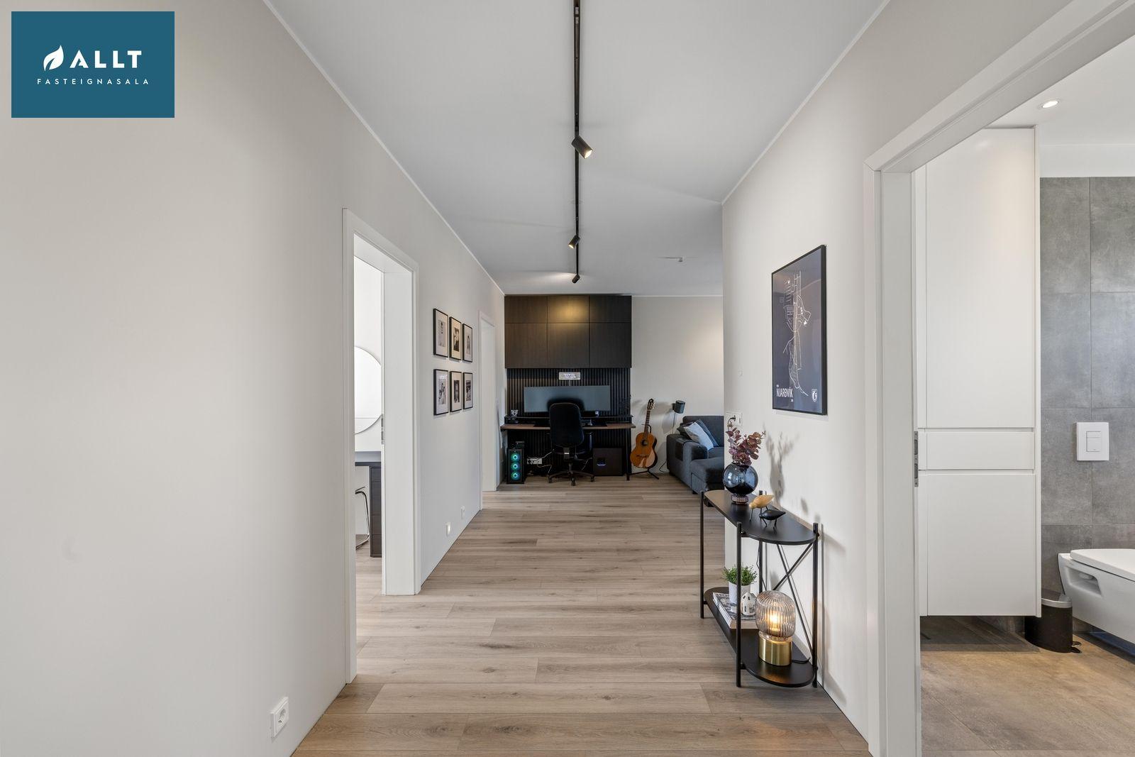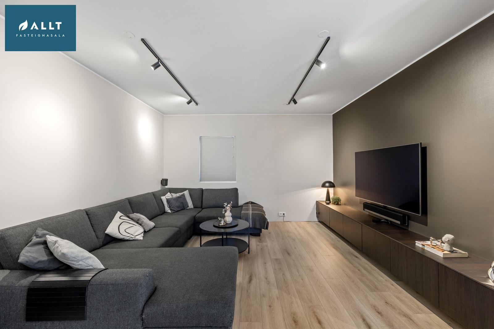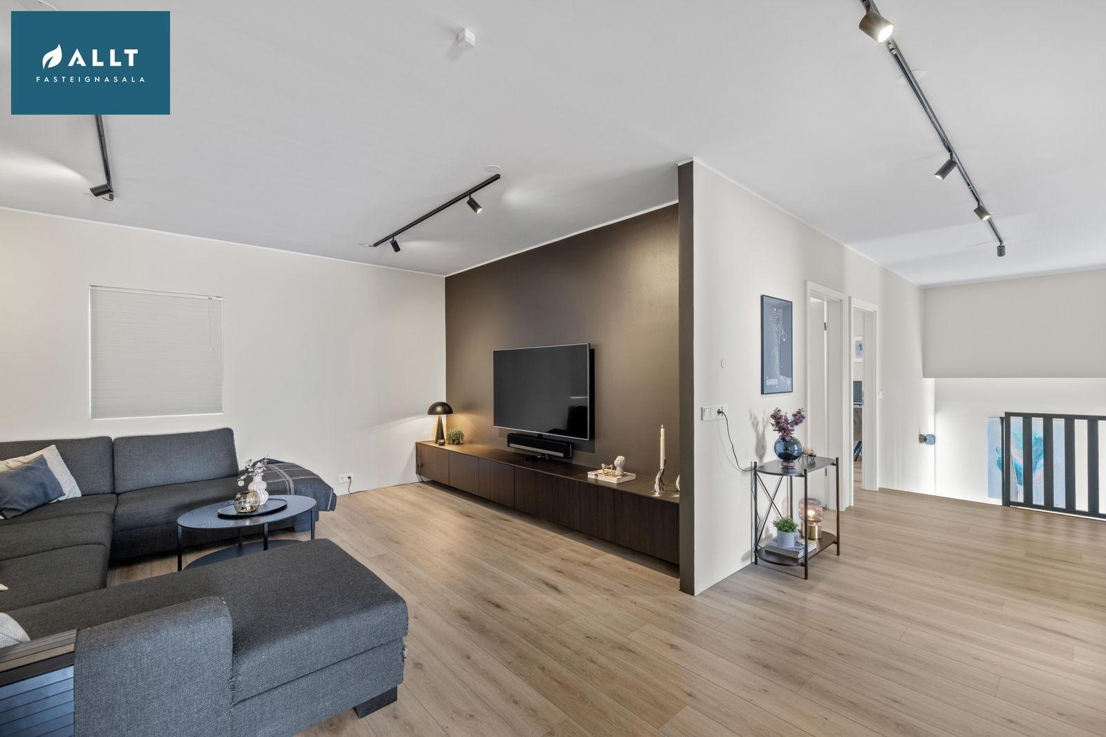 Sjónvarpshol: Er með ljósu harðparketi, möguleiki er að breyta í stórt herbergi.