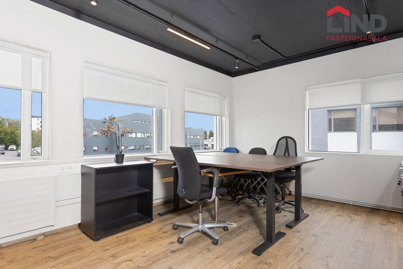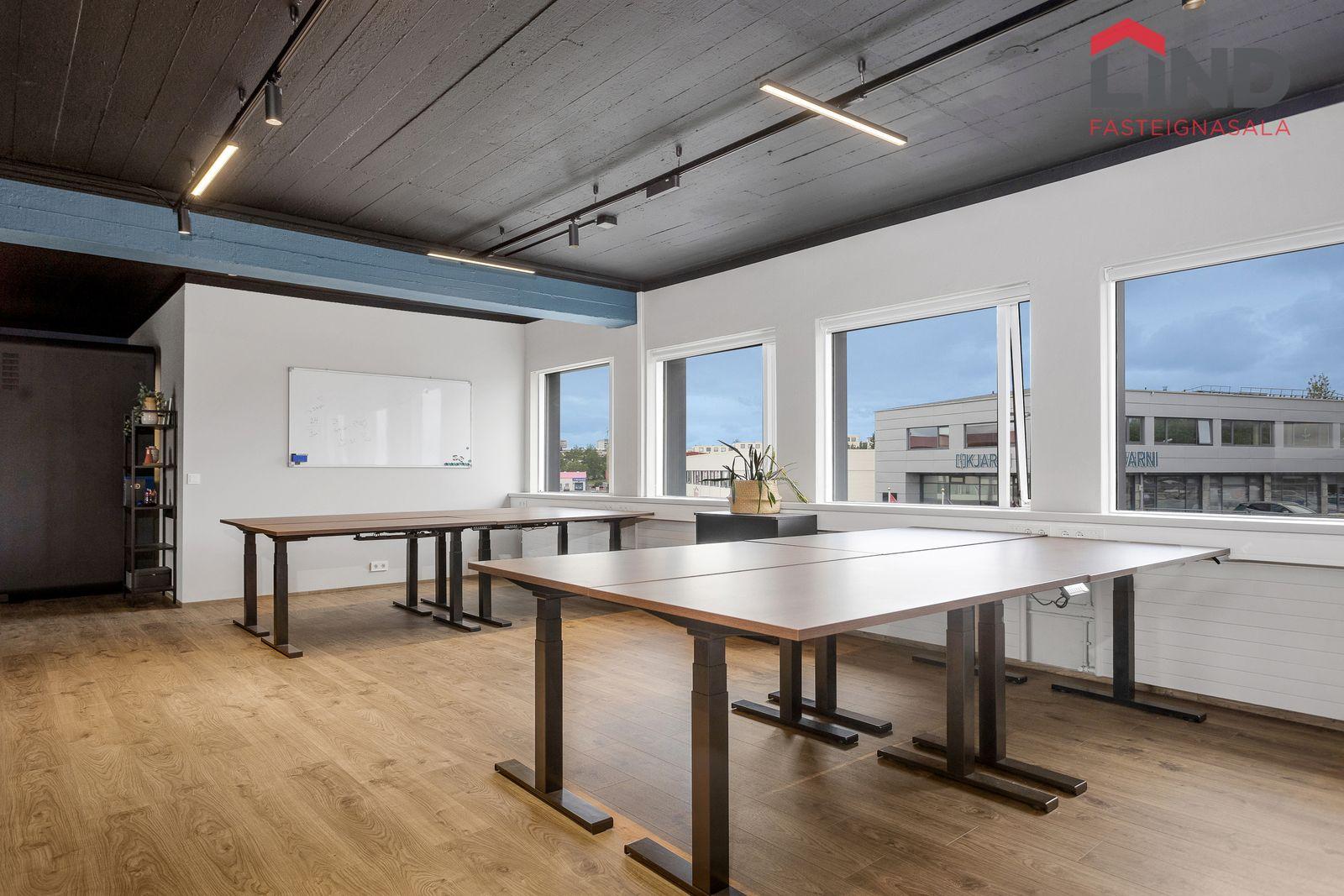 LIND Fasteignasala kynnir Síðumúla 27, Glæsilegt og nýlega standsett skrifstofuhúsnæði sem er laust til afhendingar! Rýmið er á þriðju (efstu) hæð og skiptist í opin vinnurými með 24 vinnustöðvum, þrjár lokaðar skrifstofur og tvö fundarherbergi. Kaffistofa/eldhús og tvær snyrtingar.
