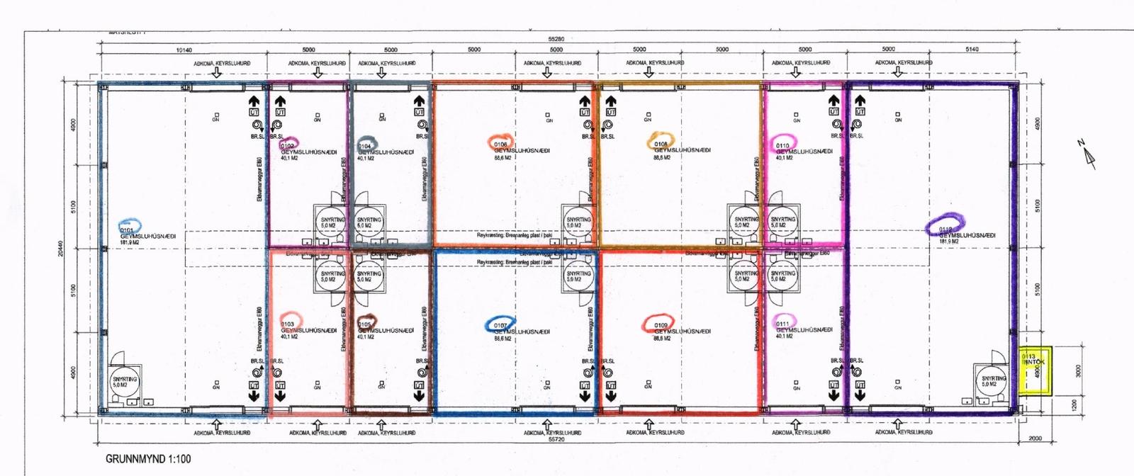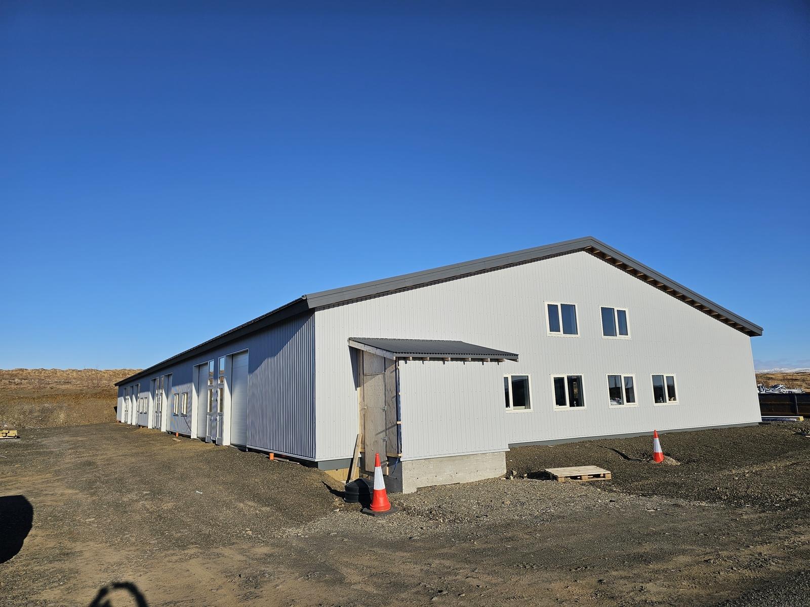 Áætluð afhending er apríl 2024. Eignin afhendist á byggingarstigi B4, malbikun á plani verður klárað með vorinu 2024. Stór hurð með fjarstýringu og göngu hurð í öllum bilum. Hiti í gólfi, 1 mælir reiknað út frá eignarhluta. Stútar fyrir klósett og ræstivask. Niðurföll fyrir innan og utan hurð. Rafmagnstafla fullfrágengin og i ljós og öryggisljós, rafmagnsmælir er fyrir hvert bil. Hvert bil er brunavarnarhólf, reyk lúga í hverju bili, samloku veggir allir b60 inni í húsinu. Túða upp úr þaki til að tengja loftræstingu frá baðherbergi.