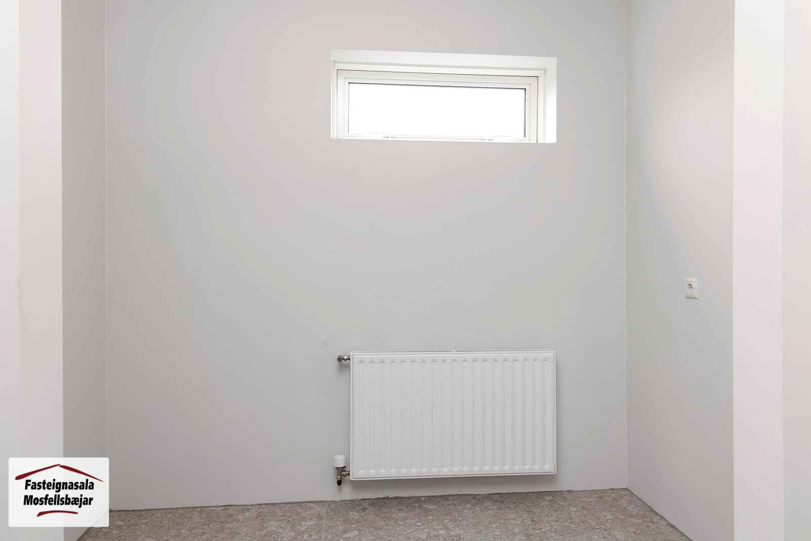 Geymsla er með glugga og flísum á gólfi. Hægt að nýta sem herbergi.