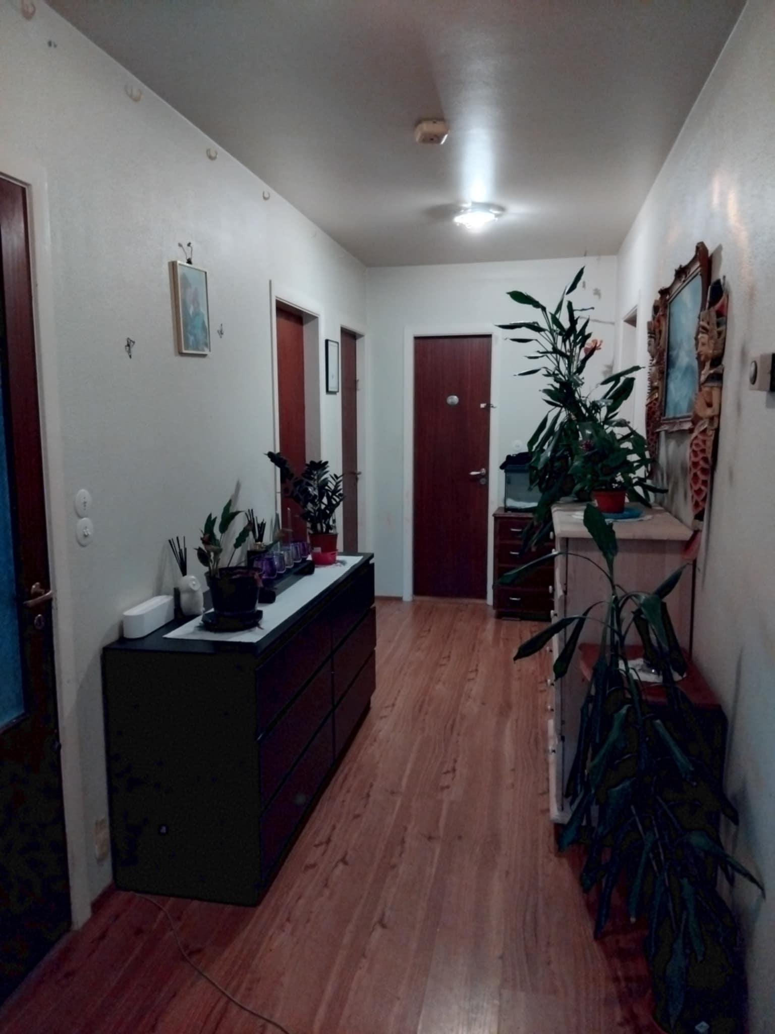 Sérinngangur er á efri hæð, upp stiga. Á efri hæðinni eru forstofa, þrjú svefnherbergi, gangur, baðherbergi, tvær samliggjandi stofur, eldhús, og búr. Svalir eru út úr stofu, þar hefur verið útbúinn gróðurskáli. Stigi er á milli hæða. Á neðri hæð er þvottahús með útgangi og stór geymsla. Einnig er þar sérstök íbúð, sem auðveldlega getur nýst sem hluti af íbúðinni uppi.