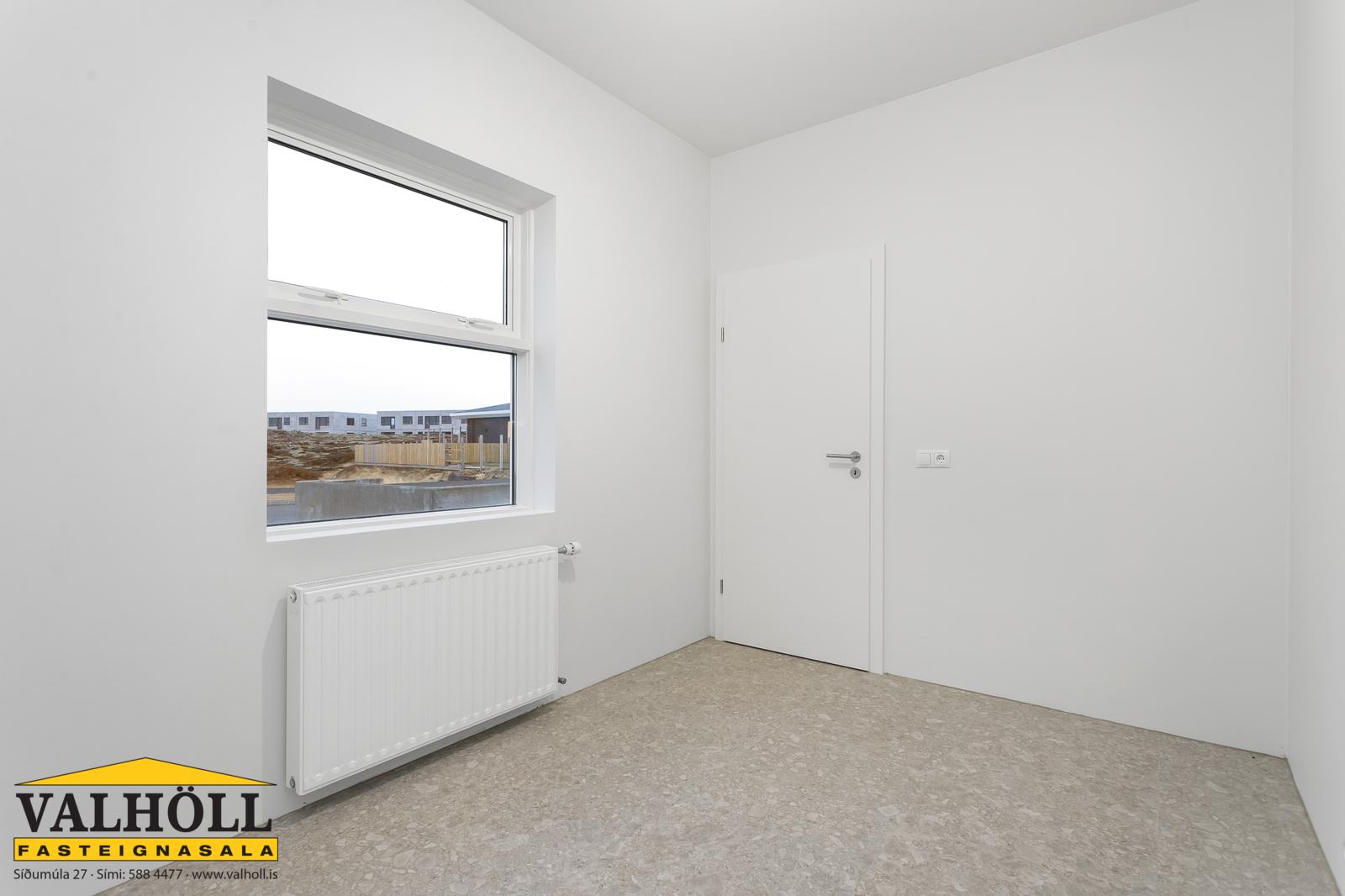 Valhöll fasteignasala kynnir: Fallegt 4-5 herbergja parhús á einni hæð með bílskúr í Vogum á Vatnsleysuströnd. Eignin er skráð 170,5 m2 á stærð og þar af bílskúr 27,2 m2. Eignin skiptist í þrjú svefnherbergi, geymslu með glugga (hægt er að nota sem herbergi), baðherbergi, þvottarými, forstofu, eldhús, stofu, borðstofu og bílskúr. Búið er að tyrfa lóðina og helluleggja verönd fyrir aftan hús og bílaplan. Snjóbræðsla er í bílaplani með lokuðu frostlaugskerfi.