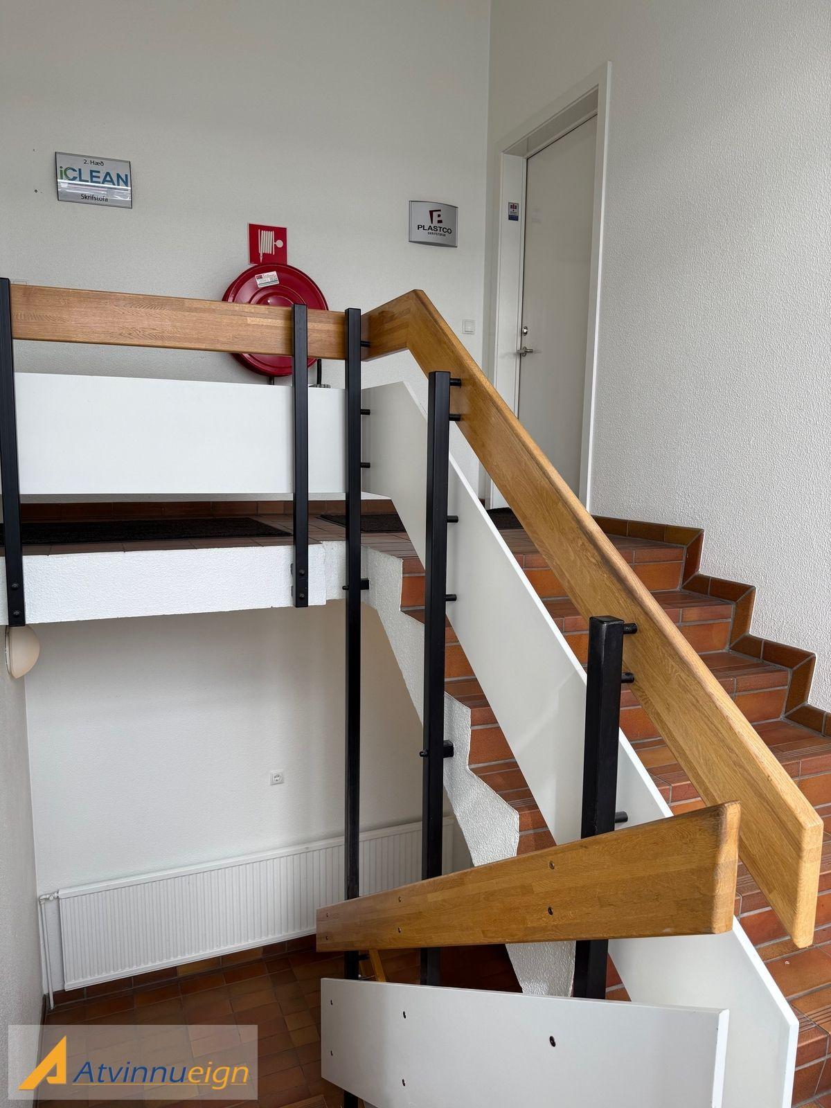 Efri hæðin er 119 m². Skrifstofur eru fjórar og mjög gott opið rými. Góð kaffistofa og snyrting. parket á gólfi.