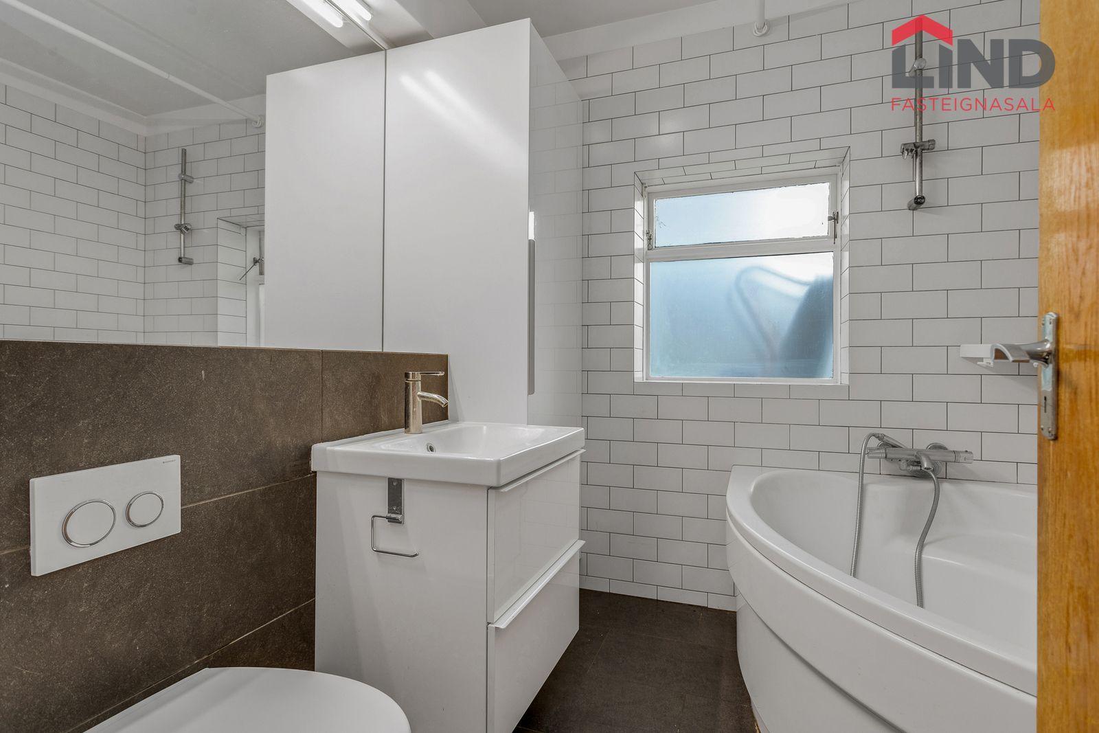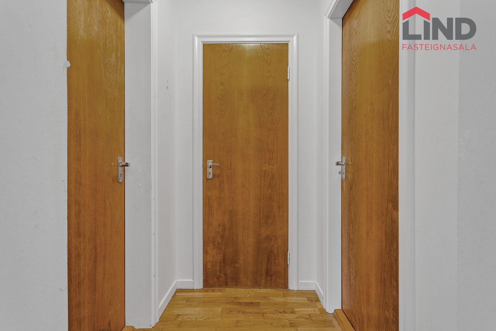 Nánari lýsing: Forstofa er með parketi á gólfi. Eldhús með flísum á gólfi og hvítri innréttingu. Í eldhúsi er borðkrókur. Alrými er rúmgott með parketi á gólfi. Hjónaherbergi er rúmgott með parketi á gólfi og góðum fataskápum. Svefherbergi er staðsett inn af hjónaherbergi. Þar parket á gólfi og fataskápur. Baðherbergi er flísalagt með hvítri baðinnréttingu. Stórt hornbaðkar með sturtuaðstöðu. Lítil geymsla er staðsett á gangi innan íbúðar. Úr íbúð er innangengt á sameignargang þar sem sameiginlegt þvottahús er staðsett.