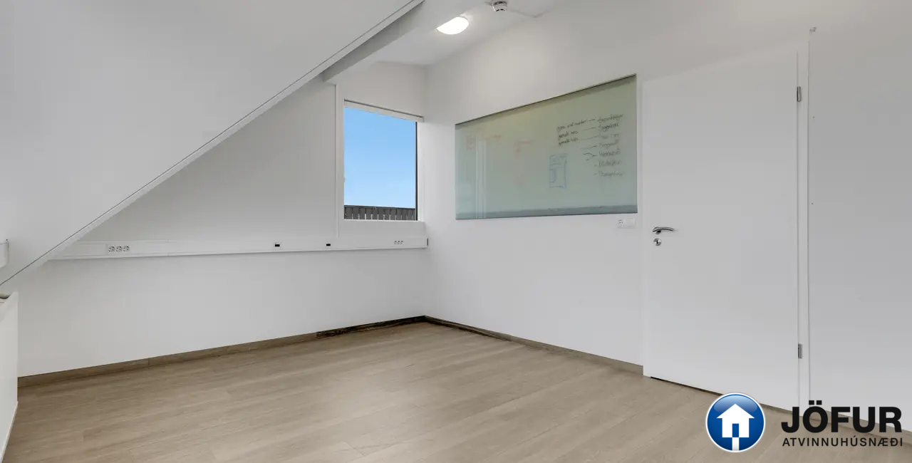 Rýmið samanstendur af opnu vinnurými ásamt þrem skrifstofum / fundarherbergjum. Eldhúsaðstaða er innan rýmisins og einnig snyrting. Afar bjart húsnæði með góðri lofthæð ásamt stórum svölum Vel staðsett skrifstofuhúsnæði nálægt stofnbraut og stutt frá allri helstu þjónustu.