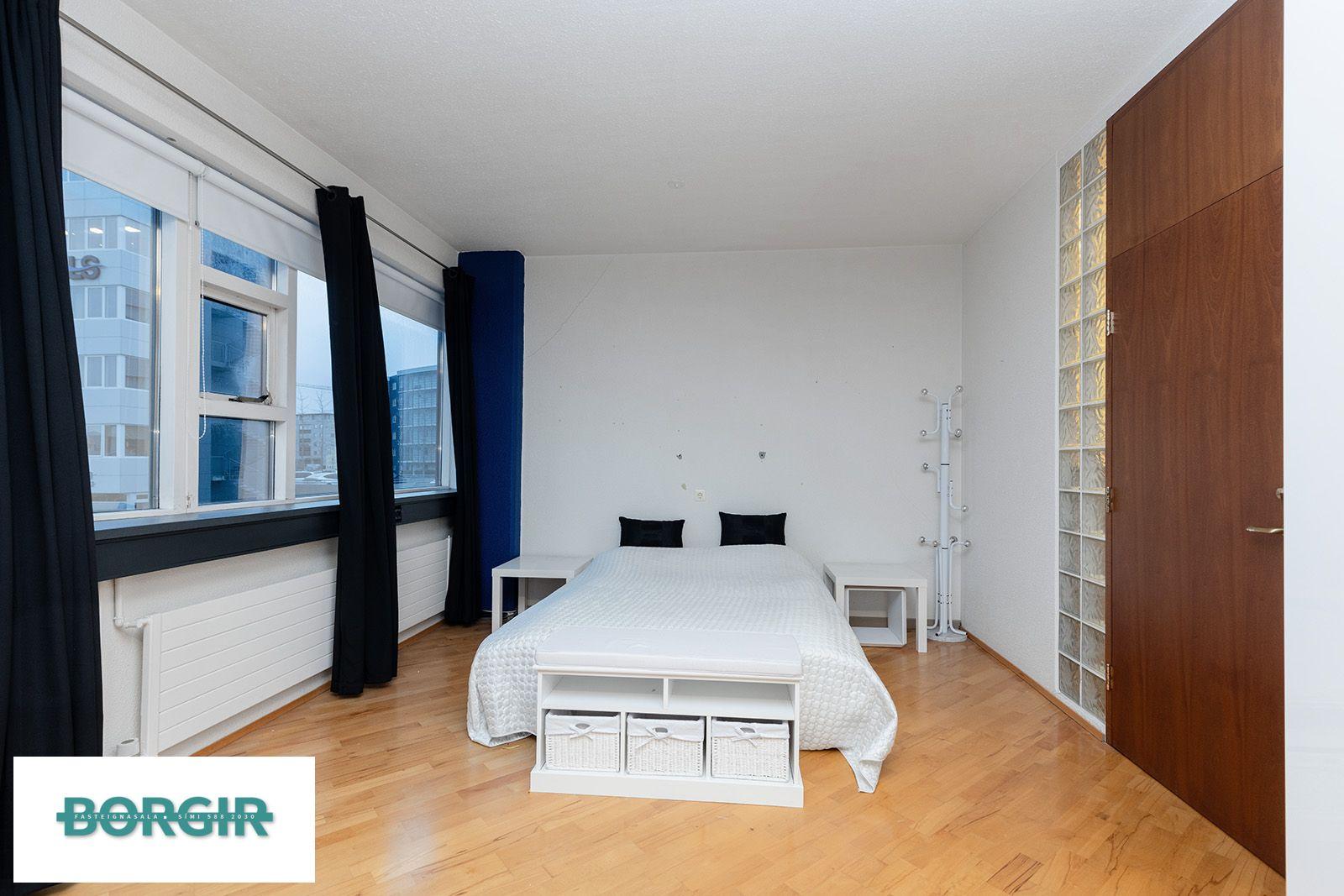 Um er að ræða skrifstofuhúsnæði í einu eftirsóttasta viðskiptaumhverfi Reykjavíkur. Húsnæðið er á 2.hæð með mikið af gluggum með útsýni til norðurs, gler eru með sólarfilmu. Húsnæðið er að mestu leyti einn salur sem bíður uppá mikla möguleika. Búið er að stúka af eldhús og í því er vaskur, innrétting, eldavél með ofn. Annað rými er með hurð sem gæti nýst sem fundarherbergi eða skrifstofa þar eru gluggar á tvo vegu austur og vestur. Stórt baðherbergi er í húsnæðinu en salernið er frammi í sameign. Á gólfunum er parket nema flísar á baðherbergi og eldhúsi.