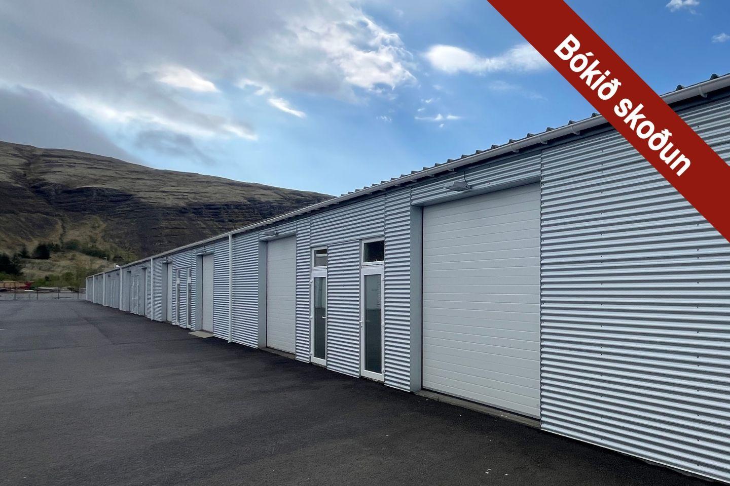 Annað: Eigninni fylgir aðgengi að sameiginlegum salernum á svæðinu. Allt útisvæðið er malbikað og afgirt með netgirðingu. Innanmál rýmis eru 8,4 metrar á dýpt og 8,2 metrar á breidd. Rafdrifin bílskúrshurð er yleiningarhurð, 3 x 3 metrar. Inngangshurð er í rýmið er við hlið bílskúrshurðar. Veggir eru klæddir með gifpsi og krossvið. Hiti og rafmagn er sameiginlegt á svæðinu. Búseta er óheimil í mannvirkjum á lóðinni. Óheimilt er að staðsetja gáma á lóðinni. Í matshluta 01 er sameign allra eigna í báðum matshlutum eftirfarandi: