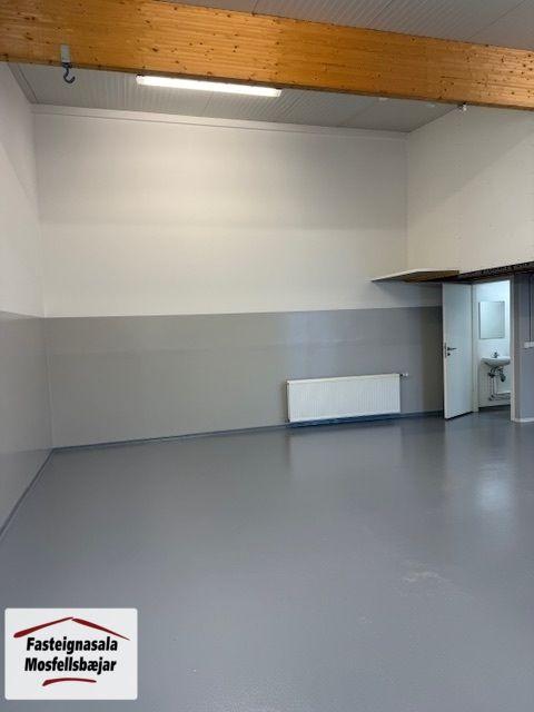 Fasteignasala Mosfellsbæjar kynnir: 72,5 m2 geymsluhúsnæði á afgirtu lokuðu svæði við Desjamýri 5 í Mosfellsbæ. Hámarks lofthæð 4,3 m og er búið að setja upp um 7 m2 milliloft/geymsluloft innst í bilinu. Auðvelt er að stækka milliloftið. Einnig er búið að setja upp salerni. Ný málað, með epoxy málningu á veggjum. Nýtt gólfefni. Engin VSK-kvöð er á eigninni. Eignin er laus til afhendingar strax við kaupsamning