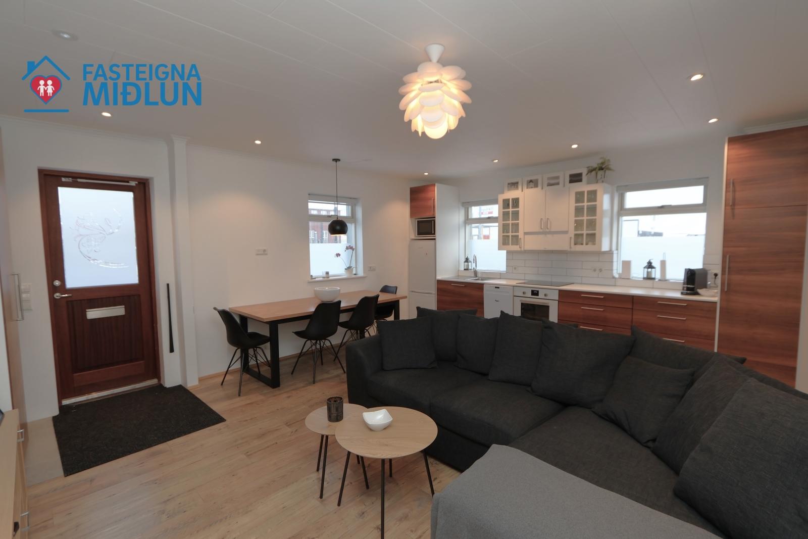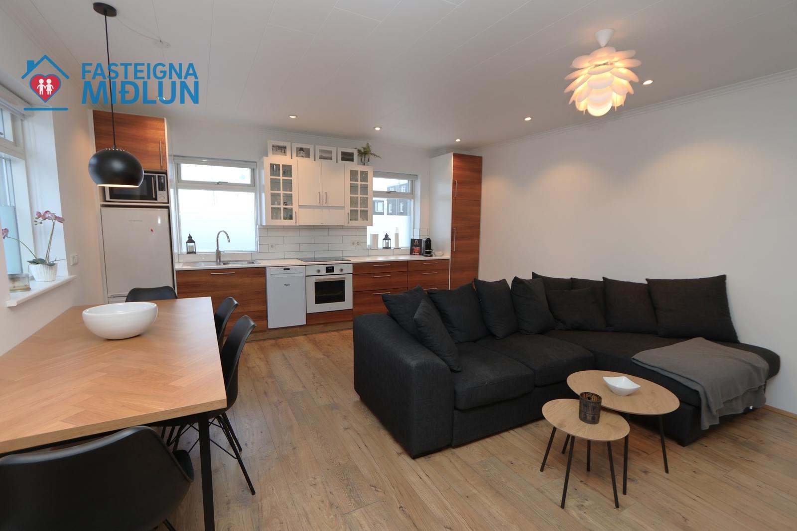 Um er að ræða íbúð á fyrstu hæð í þriggja íbúða húsi með sérinngang. Íbúðin samanstendur af forstofu, eldhúsi, stofu, baðherbergi og svefnherbergi. Fljótandi parket er á eigninni fyrir utan baðherbergi. Eignin hefur nýlega verið talsvert gerð upp en vatnslagnir hafa verið endurnýjaðar sem og baðherbergi, innréttingar og skápar, rafmagn og gólfefni. Einnig hefur eignin verið gerð upp að utan eða múruð að utan og þak endurnýjað.