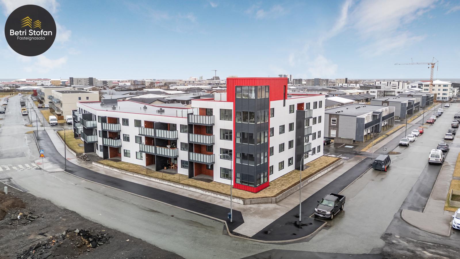 Betri Stofan Fasteignasala, Dagrún Davíðsdóttir og Jason Kristinn Ólafsson löggiltir fasteignasalar kynna nýja 3 herbergja 74 fm íbúð á 2 hæð með sérinngangi ásamt geymslu og bílastæði í bílakjallara. 6,5 fm svalir. Íbúðirnar afhendast fullbúnar við kaupsamning, með gólfefnum, innbyggðri uppþvottavél, ísskáp með frysti og lýsing er í loftum. Ljós eru innbyggð að hluta. Baðherbergi eru flísalögð með sturtugleri, vaski, upphengdu salerni og handklæðaofn.