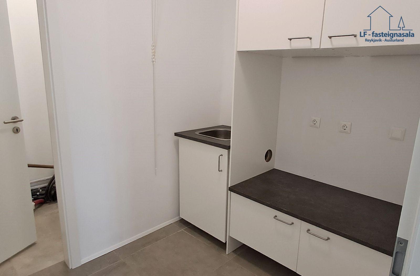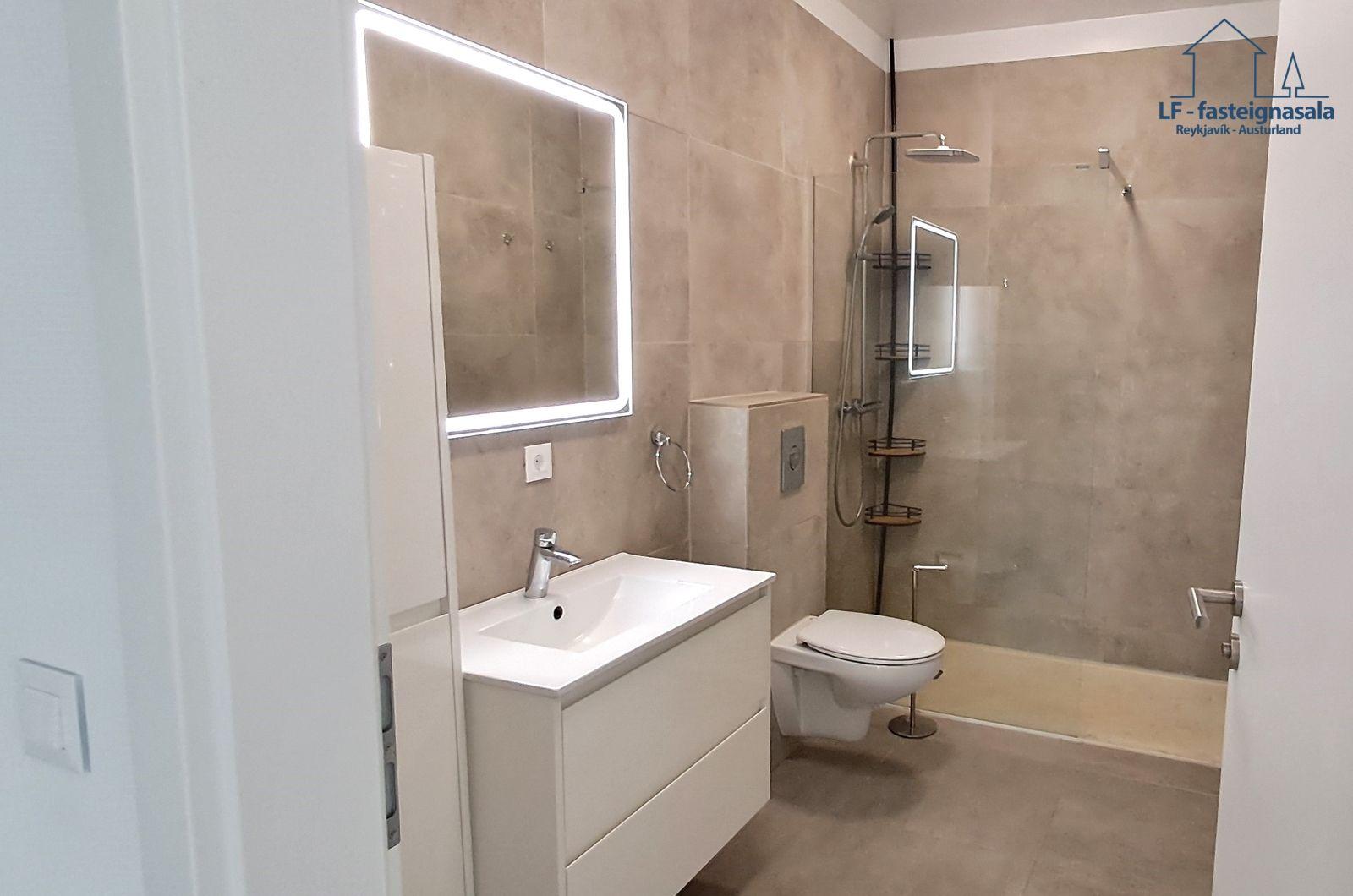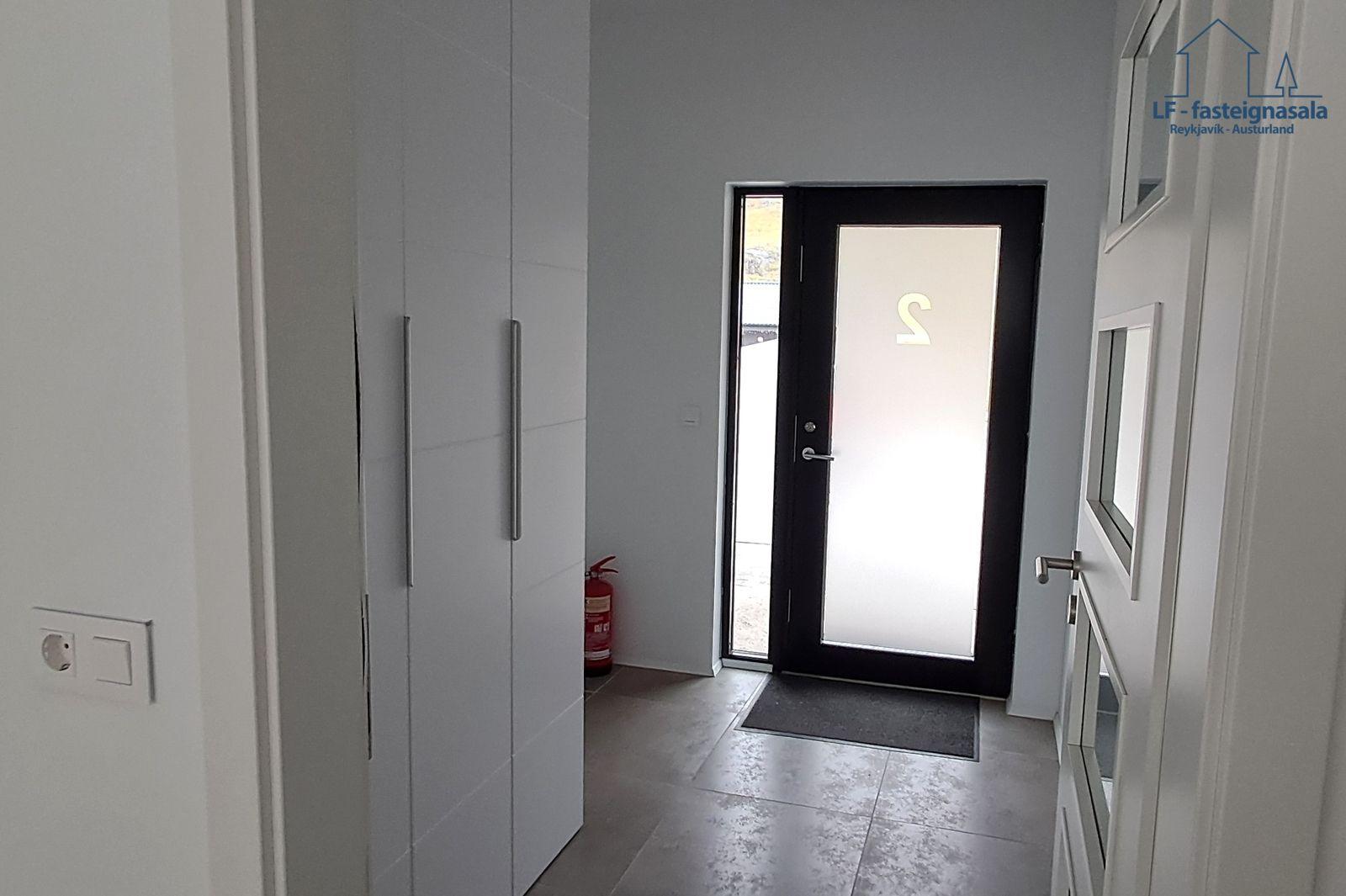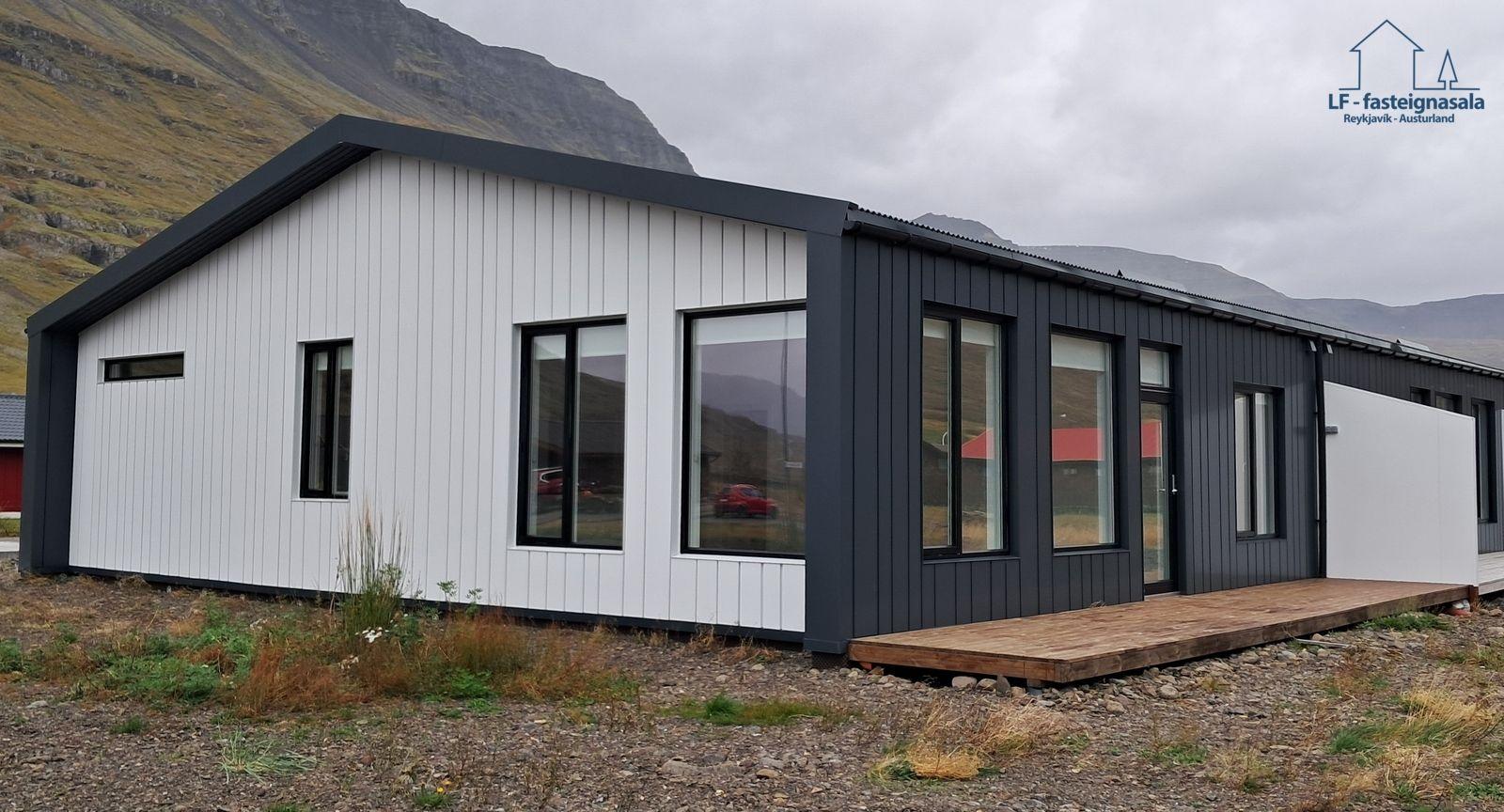 LF-fasteignasala/Lindin fasteignir s. 893-1319 og Þórdís Pála Reynisdóttir löggiltur fasteignasali thordis@lindinfasteignir.is kynna: Árdalur 2, Eskifirði, Fjarðabyggð. Um er að ræða 4ra herbegja 123,5 fermetra ENDAÍBÚÐ í raðhúsi. Húsið er til leigu og hentar hvort sem er fjölskyldu eða 3 einstaklingum saman og jafnvel 2-3 pörum saman. Mjög rúmgott og fallegt endaraðhús með 3 góðum svefnherbergjum sem öll eru með skápum. Húsið er Íslensk hönnun teiknað af Rúnari Inga Guðjónssyni. Burðarvirki hússins er timbur. Húsið er klætt að utan með Alucoil Larsen álklæðningu frá Idex ehf. Aðallitur dökkgrár en gaflveggir og inndregnir veggir minni íbúða eru með ljósri álklæðningu. Á þaki er báruþakál, dökkgrátt að lit. Svartar álrennur utan á þakkanti. Húsið er klætt að innan, veggir og loft með 12,5mm Fermacell harðgifsi, sterkar trefjaplötur sem eiga ekki að mygla þó að vatn komist að þeim. Gluggar/Útihurðir eru ál-tré gluggar/hurðir, hvítt að innan en svart að utan. Hitakerfi: Gólfhitalagnir, tengdar saman við tengigrind. Í eldhúsi er hvít hálf-glans innrétting með króm Grohe blöndunartækjum og 50x40 stálvaski. Vandað Bosch helluborð/bakaraofn, vifta OG AÐ AUKI örbylgjuofn, uppþvottavél og ísskápur m/frysti sem fylgja. Led ljós eru í innréttingu. Borðplötur eru úr dökkgráum steini. Helluborðið í eyju ásamt viftu í helluborðinu sjálfu. Í eyjunni eru tvöfaldir skápar og skúffur. Í öllum svefnherbergjum og forstofu eru vandaðir hvítir fataskápar. Í þvottahúsi er stálvaskur með skáp undir. Innihurðir eru frá Birgisson ehf, hvítlakkaðar og forstofuhurðar eru hvítar með glerrömmum. Gólfefni eru frá Birgisson ehf, öll gólf nema blautrými og forstofa, verða með vönduðu harðparketi frá Birgisson ehf. Forstofa, baðherbergi og þvottahús flísalögð. Á baðherbergi er vönduð hálfglans hvít baðinnrétting með háum skáp og djúpum skúffum undir vaski. Salerni er vegghengt, sturta með steingólfi og glerþili. Blöndunartæki frá Grohe. Krómaður handklæðaofn. Á baðherbergi eru flísar á tveimur veggjum við sturtusvæði. Lagnaleið fyrir rafmagnshleðslu út á bílastæði. (hleðslustöð fylgir ekki). Lagnaðleið fyrir heitan pottbeggja megin við húsið. Sorptunnuskýli á lóð. 2 steypt bílastæði.