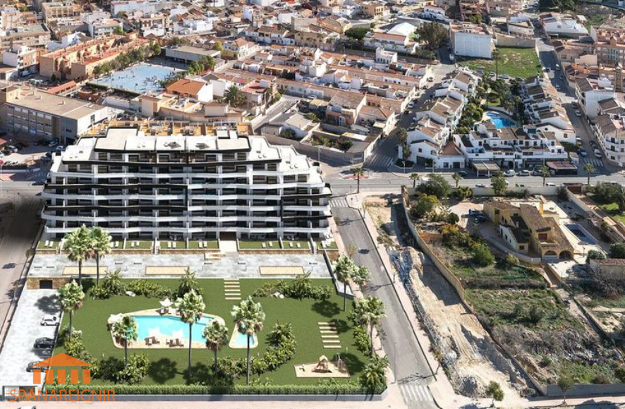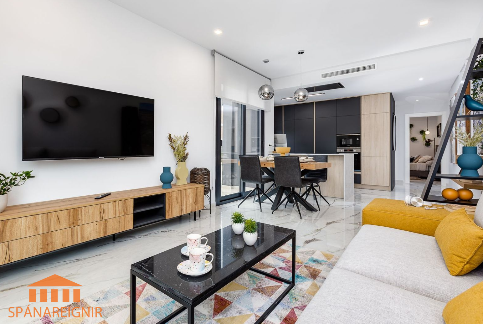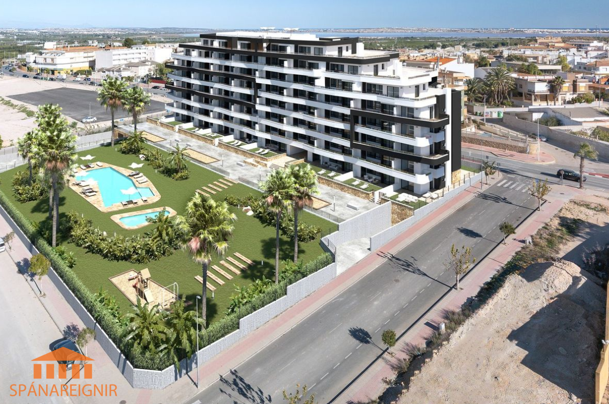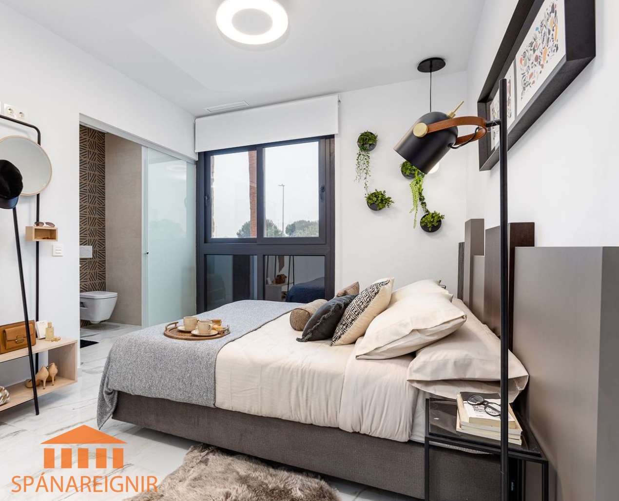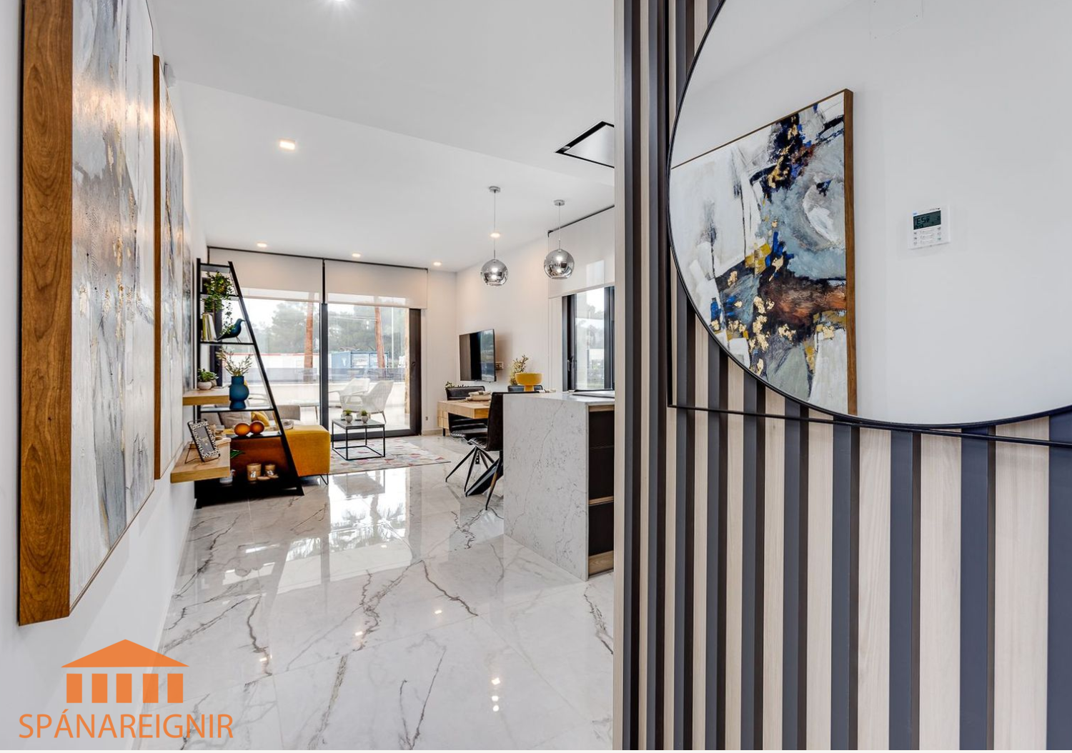 Fallegar og vel hannaðar nýjar íbúðir á frábæru verði á góðum stað í San Miguel de Salinas, rótgrónum spænskum smábæ rétt hjá fjölmörgum góðum golfvöllum og í örstuttu göngufæri frá verslunum, veitingastöðum, skóla, götumarkaði ofl. sem gerir lífið á Spáni skemmtilegt. Um 40-50 mín akstur suður af Alicante.