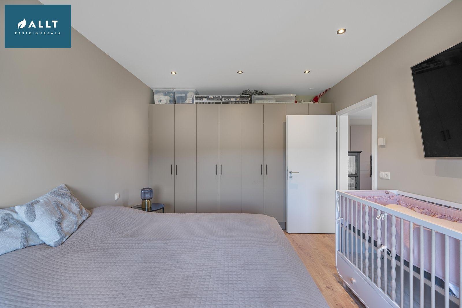 Baðherbergi: Flísalagt gólf og hluta af veggjum. Innrétting frá HTH með undirlímdum vaski, og spegli. Innangeng sturta. Þvottaaðstaða með innréttingu fyrir þvottavél og þurrkara staðsett inni á baðherbergi.