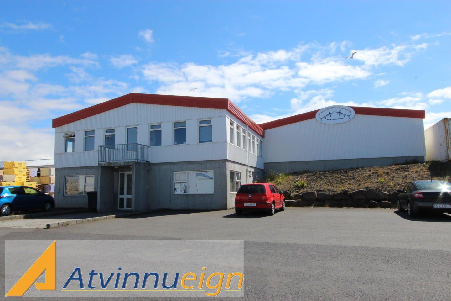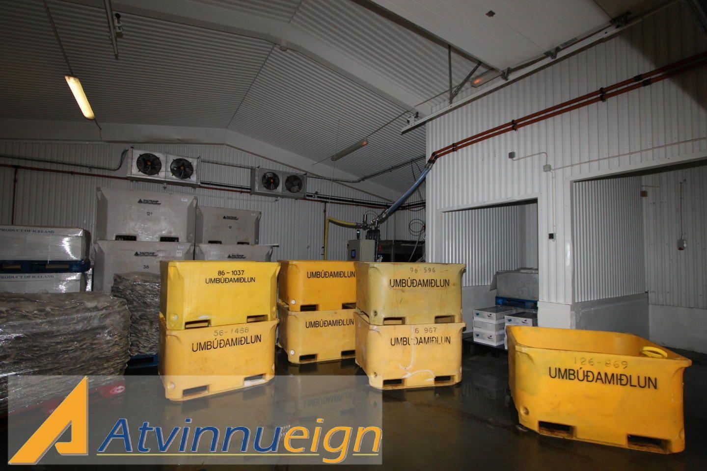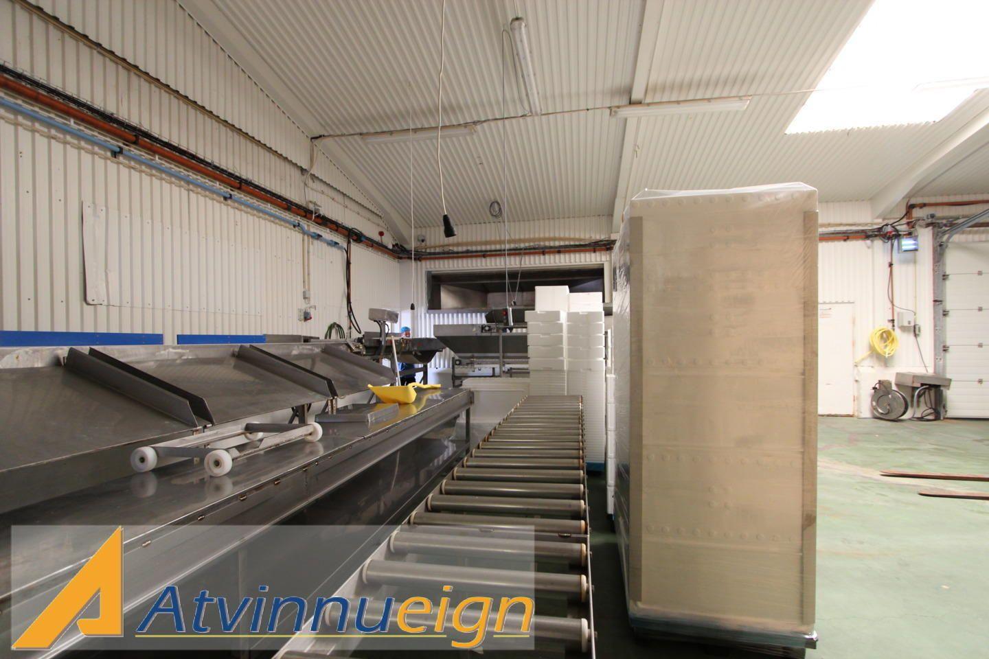 Fiskivinnsluhús með fiskmóttöku, vinnslusal, kæligeymslu, frystigeymslu, verkstæði auk skrifstofa, góðum matsal og starfsmannaaðstöðu.