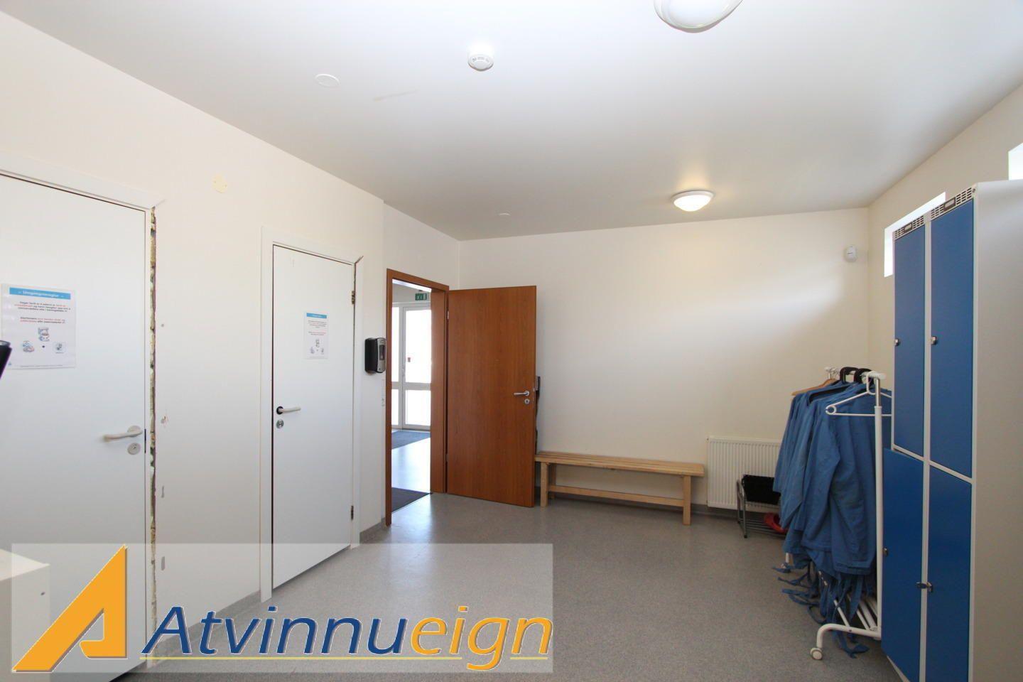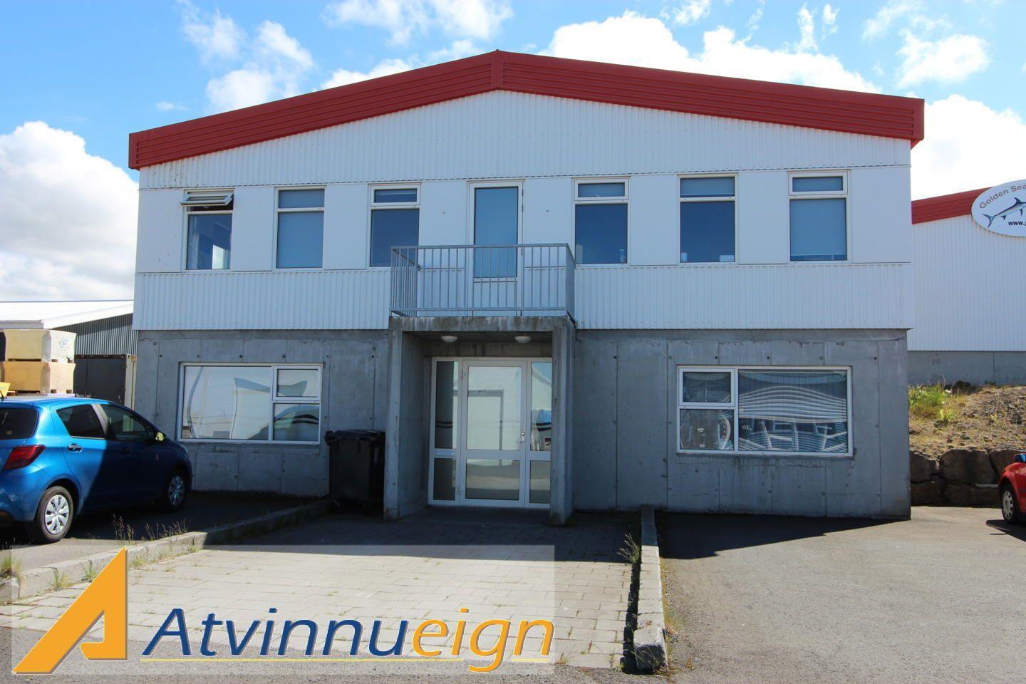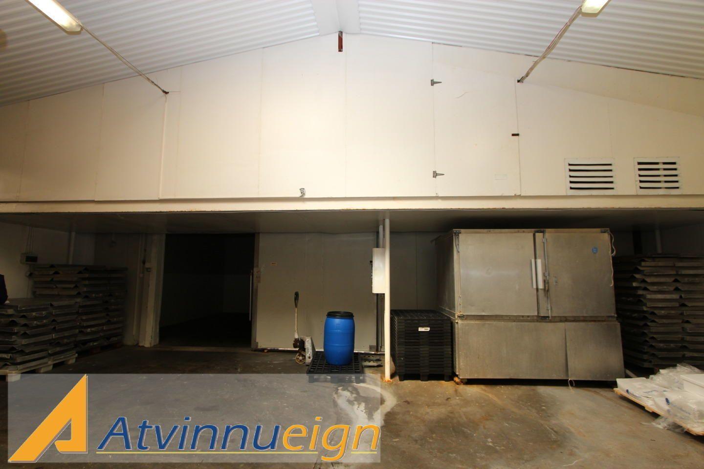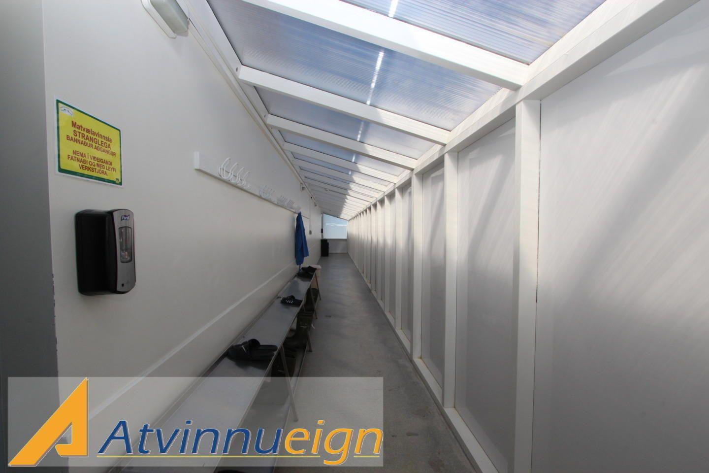 Fiskivinnsluhús með fiskmóttöku, vinnslusal, kæligeymslu, frystigeymslu, verkstæði auk skrifstofa, góðum matsal og starfsmannaaðstöðu.