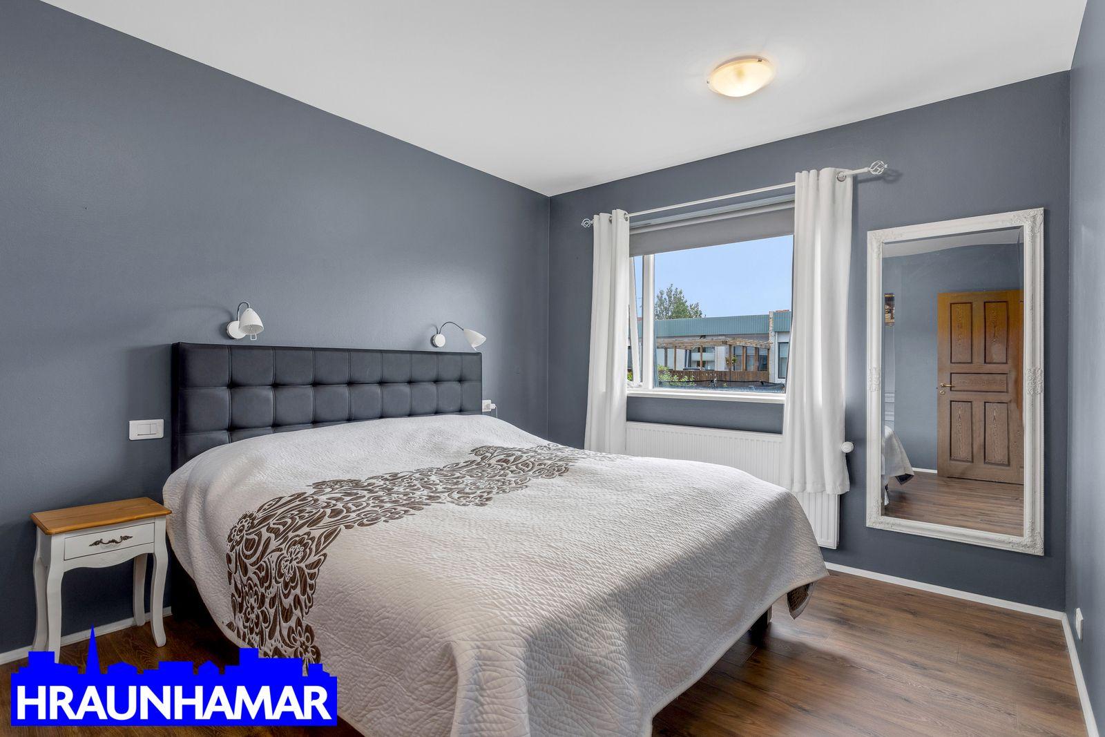 Ný dæla á baðherbergi neðri hæðar 2024. Búið að sameina tvö herbergi í eitt á efri hæð, auðvelt að breyta í tvö aftur.