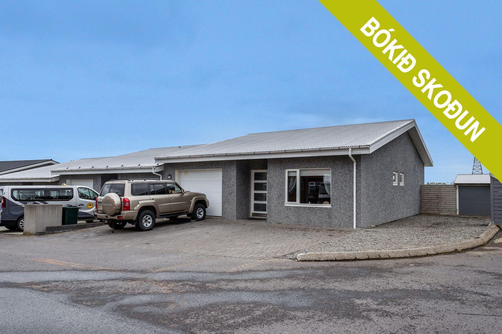 Bílskúr er flísalagður. Geymsluloft yfir hluta bílskúrs. Rafmagnsopnari á bílskúrshurð.