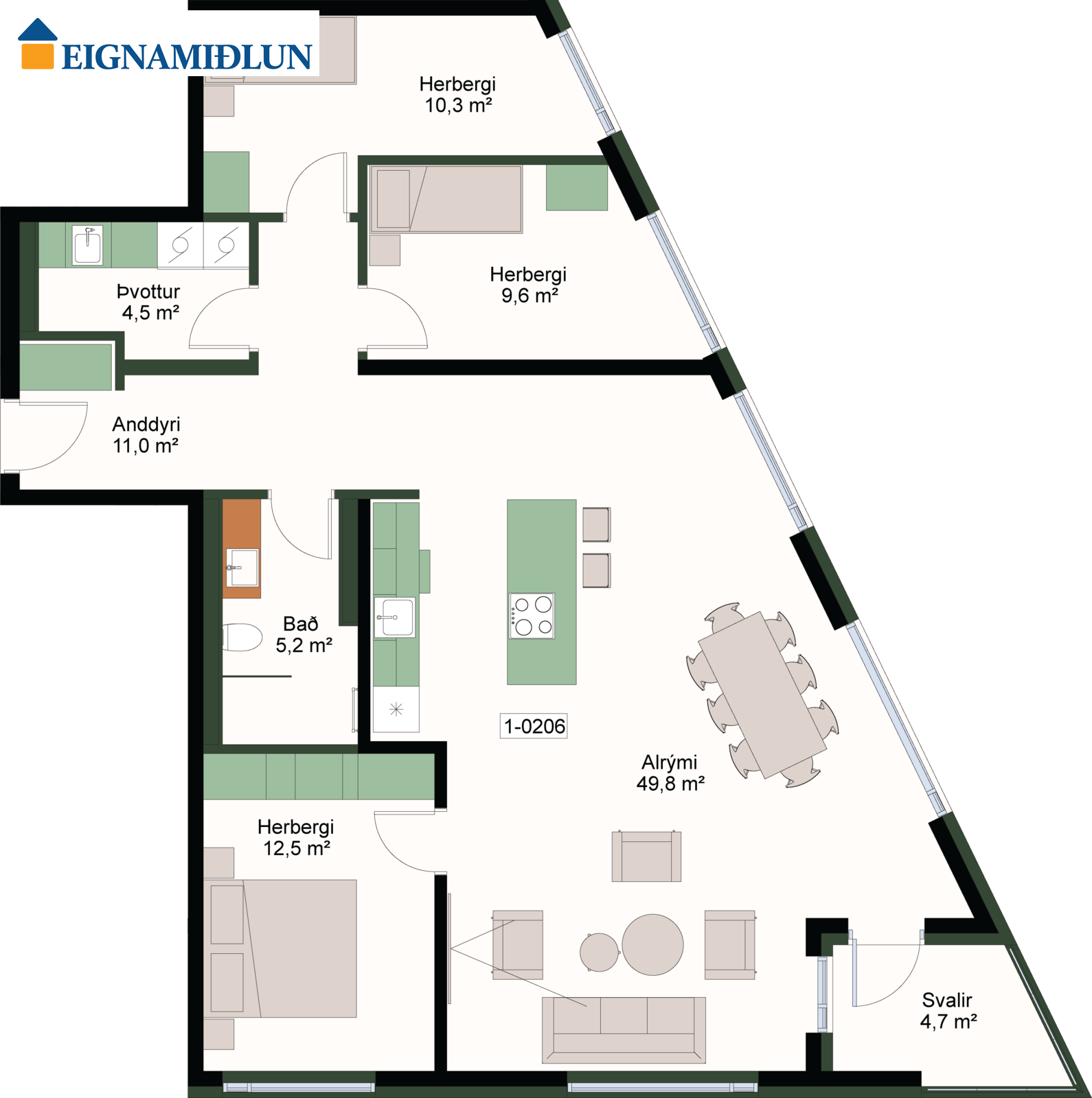 - Sér þvottahús í flestum þriggja herbergja íbúðum og stærri