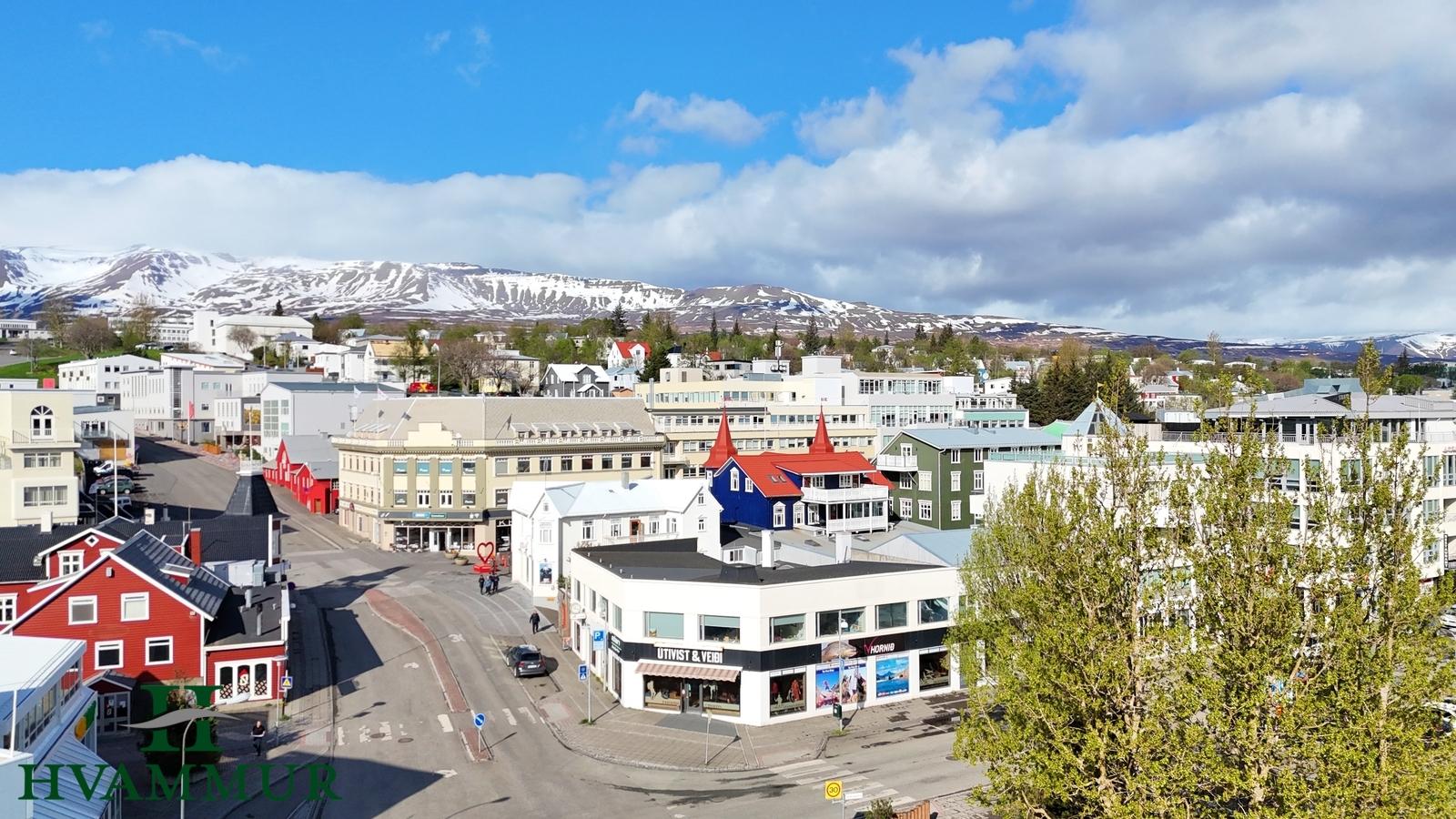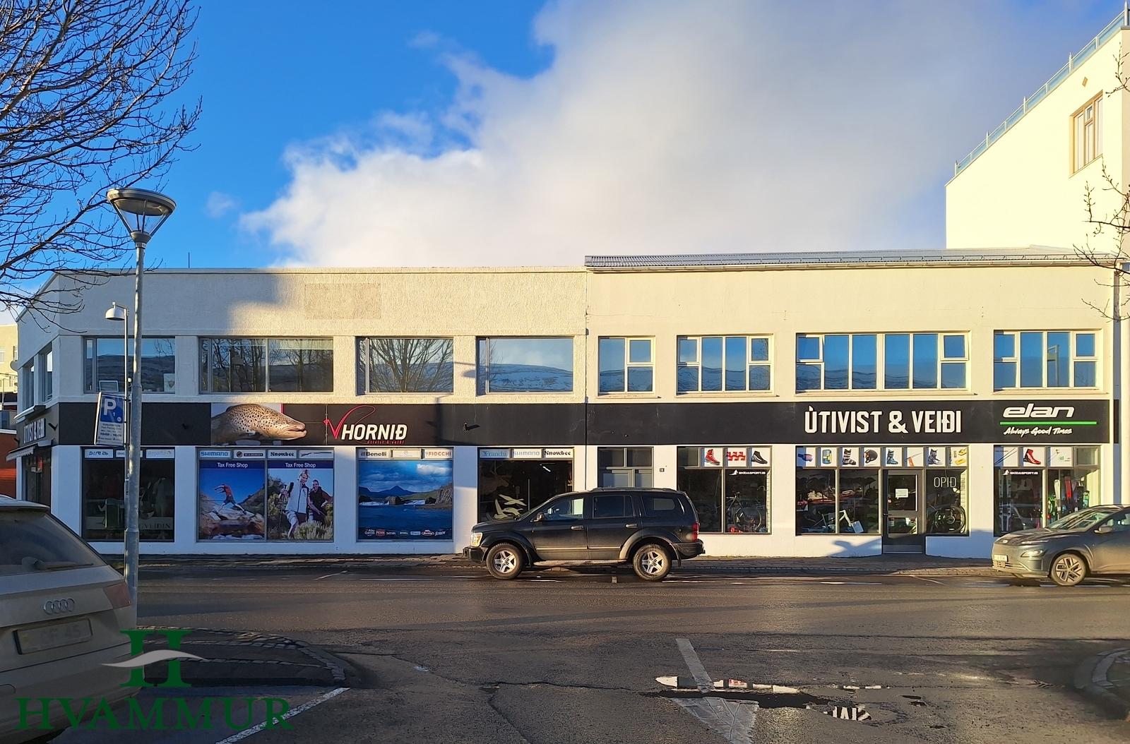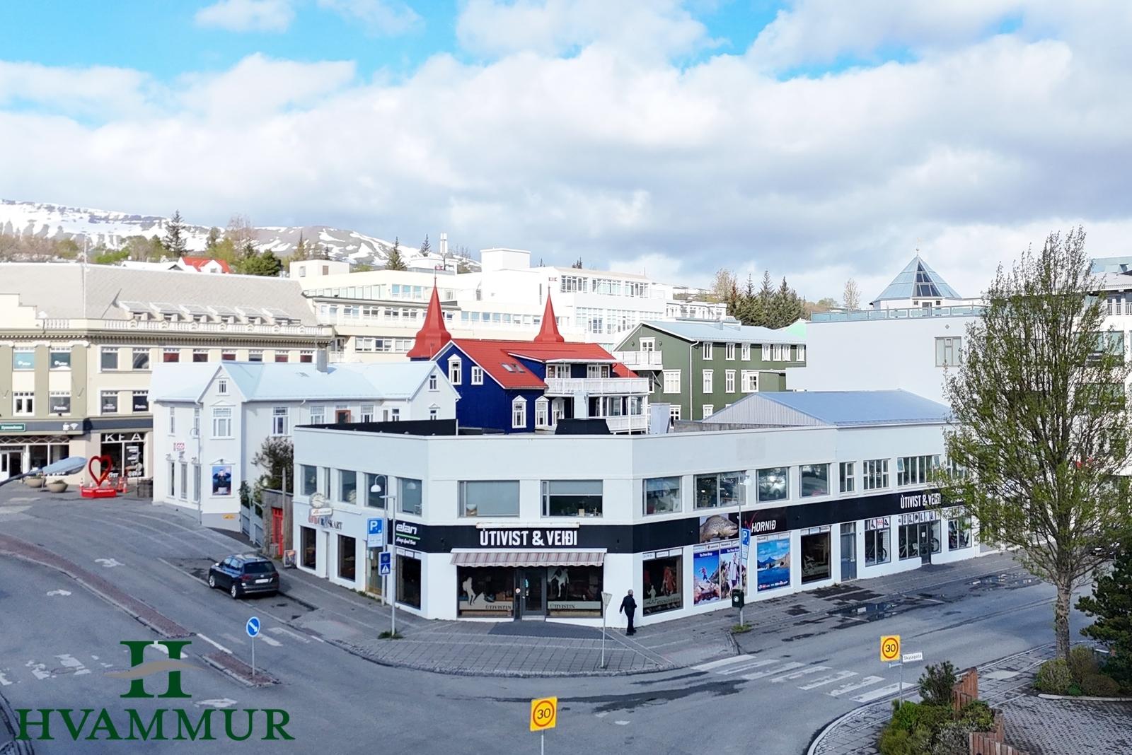 Fasteignasalan Hvammur - 466 1600 Atvinnuhúsnæði á efri hæð á horni Kaupvangsstrætis og Skipagötu í miðbæ Akureyrar - samtals 375,9 m² Um er að ræða einstaklega vel staðsetta eign á mjög áberandi stað í miðbænum. Eignirnar eru tvær, tvö samtengt skrifstofuhúsnæði sem þó er auðvelt að skipta upp í minni einingar. Annar hlutinn er Kaupvangstræti 4 sem er hornið sjálft og nær bæði upp með Kaupvangsstrætinu og norður Skipagötuna og skráð stærð er 248,6 m². Tveir inngangar eru í rýmið, annar frá Kaupvangsstræti og hinn frá Skipagötu. Hinn hlutinn er Skipagata 18 með inngang frá Skipagötunni skráð 127,3 m² að stærð. Eignin er öll í leigu sem stendur. Eignin býður annars upp á ýmsa möguleika en auðvelt er að nota eignina alla sem eitt stórt skrifstofurými, en jafnframt er auðvelt að skipta því upp í allt að þrjú rými án þess að fara í sérstakar framkvæmdir. Ath - seljandi er opinn fyrir því að selja eignirnar í sitt hvoru lagi. Seljandi er opinn fyrir því að selja Kaupvangsstræti 4 sérstaklega.