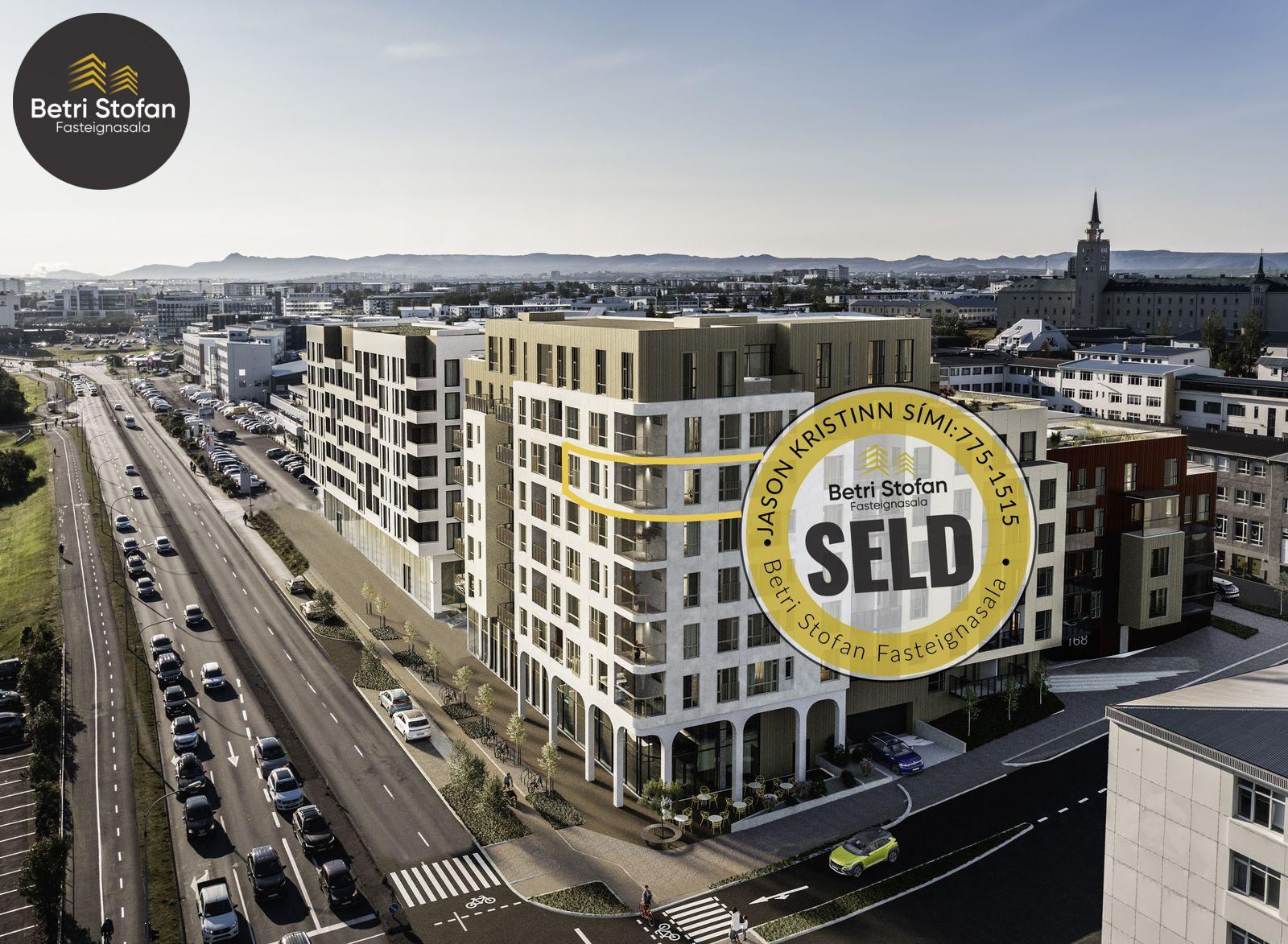 603 sem er á norðvestur horni hússins með stæði í bílageymslu. Möguleiki er að bæta við herbergi og þá yrði hún 3ja-4ra herbergja. Tvö baðherbergi eru í eigninni. Bílageymsla, stæði nr. B16 fylgir eignininni.