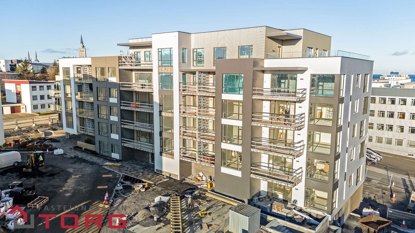 Sameign, lóð og bílageymsla verður afhent samhliða afhendingu síðustu íbúða í Bolholti 7.