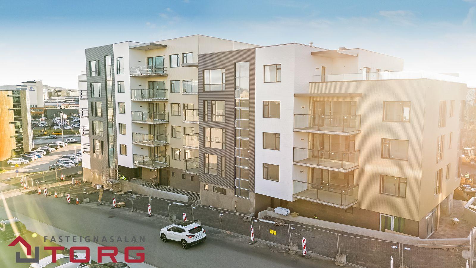 Íbúðin sjálf verður afhent án gólfefna, nema á baðherbergi og í þvottahúsi.