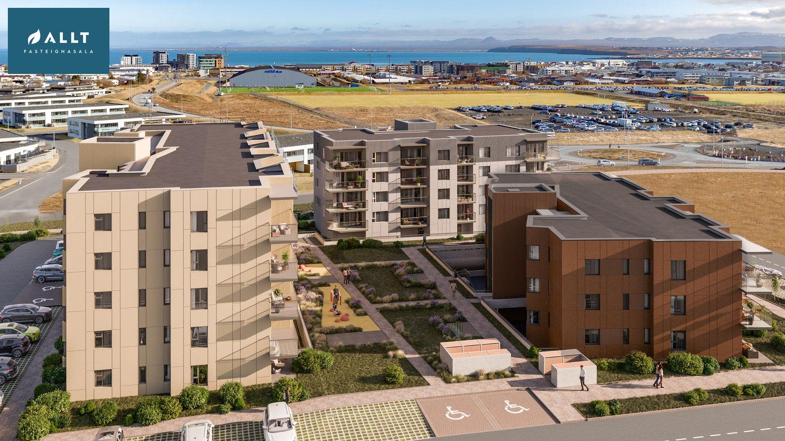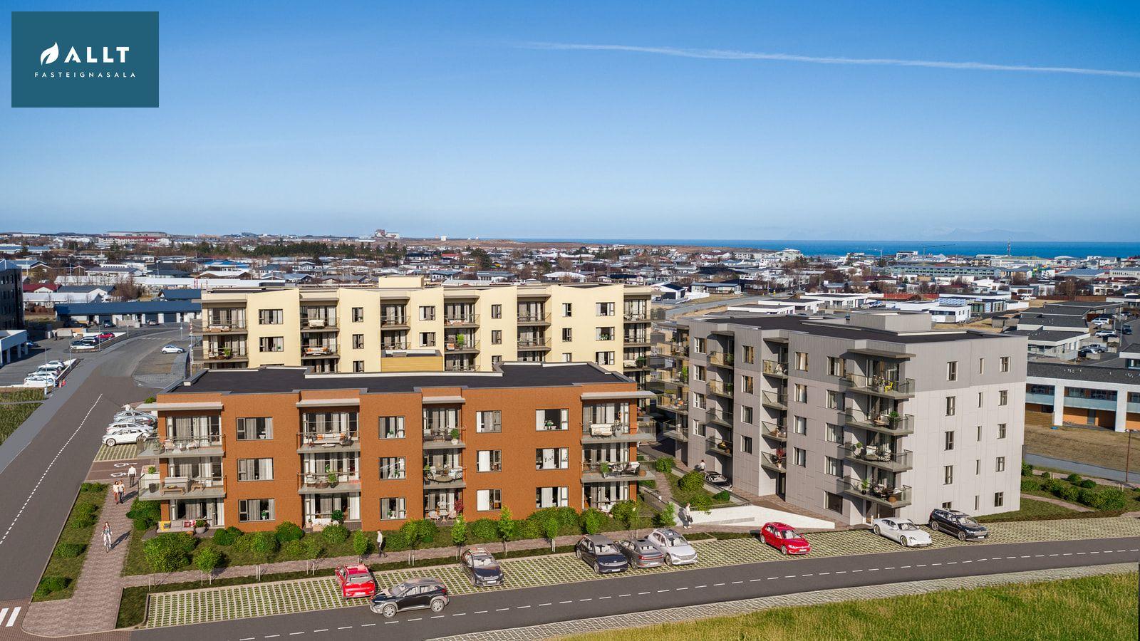Umhverfi: Umhverfið um eignina verður mjög skemmtilegt með skjólgóðu miðjusvæði fyrir íbúa. Eignin er í göngufæri við alla helstu þjónustu og öll helstu íþróttamannvirki, fjölbrautaskóla og útivistarsvæði. Um 25 mínútur frá höfuðborgarsvæði og 5 mínútur frá Flugstöð.