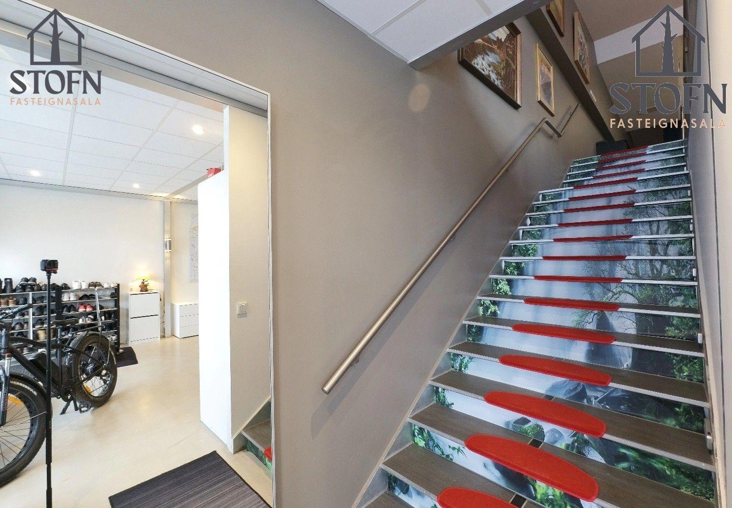 STOFN Fasteignasala kynnir: Völuteigur 6, 270 Mosfellsbær – 260 fm vönduð atvinnu- og íbúðareign með miklum möguleikum Rúmgott og vel skipulagt húsnæði á tveimur hæðum, staðsett á góðum stað í Mosfellsbæ. Eignin hentar vel fyrir ýmsa starfsemi eða sem blandað íbúðar- og atvinnuhúsnæði. Hægt er að skipta eigninni upp í tvær sjálfstæðar einingar með litlum breytingum. Eignin er í útleigu til apríl 2026 – leigusamningur getur fylgt með. Húsnæði með miklum möguleikum.