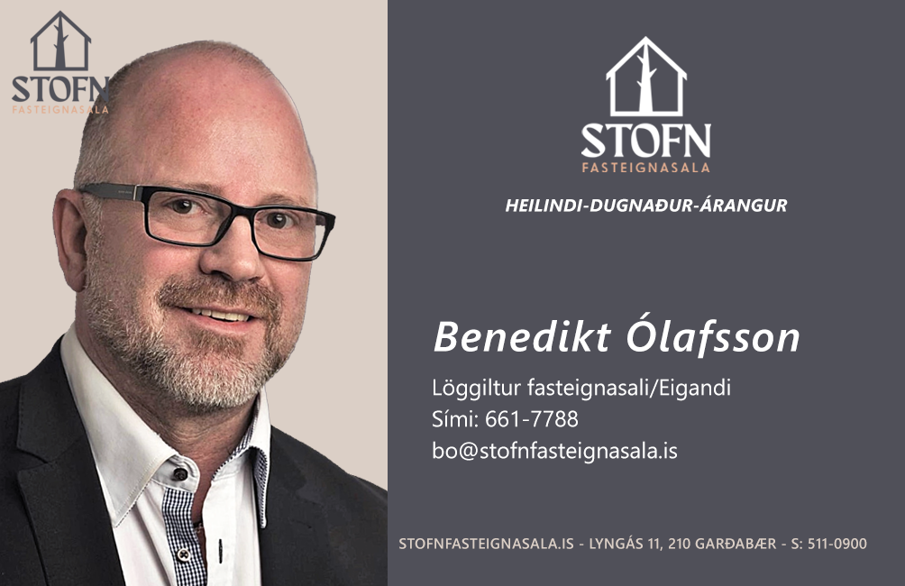 Pantið tíma fyrir skoðun, upplýsingar gefa: Benedikt Ólafsson Lgf. sími: 661 7788 eða netfang: bo@stofnfaststeignasala.is Ert þú að fara selja og vantar þig trausta og metnaðarfulla fasteignasala með reynslu og með þinn hag í fyrirrúmi? Ef svo er þá er okkar heiðurinn að vera fasteignasalinn þinn eða þinna! Okkur vantar allar tegundir fasteigna á skrá vegna aukinnar sölu!