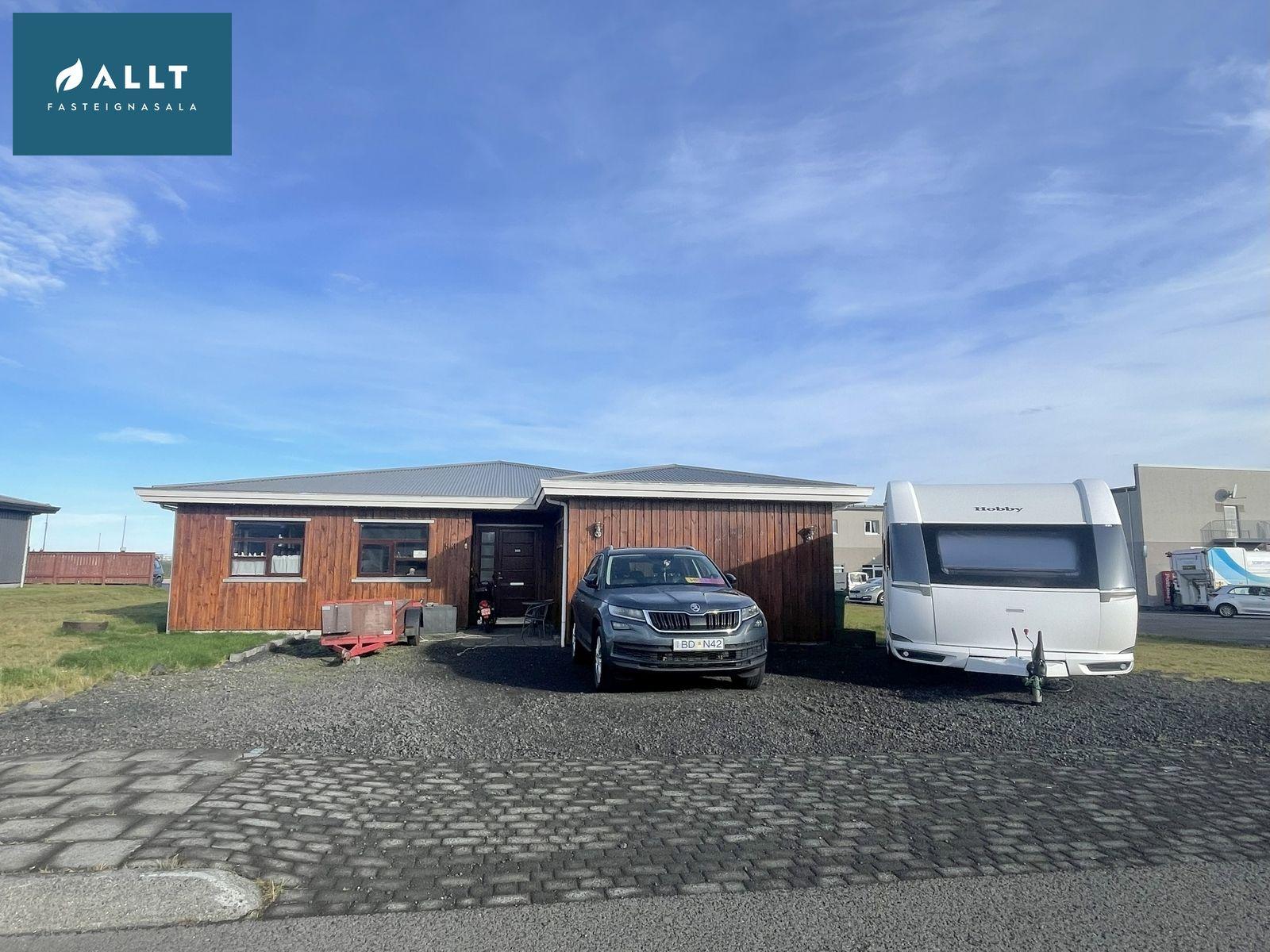 Bílskúr: Búið er að fjarlægja bílskurshurð en áætlað var að að útbúa stúdíóíbúð í bílskúrnum