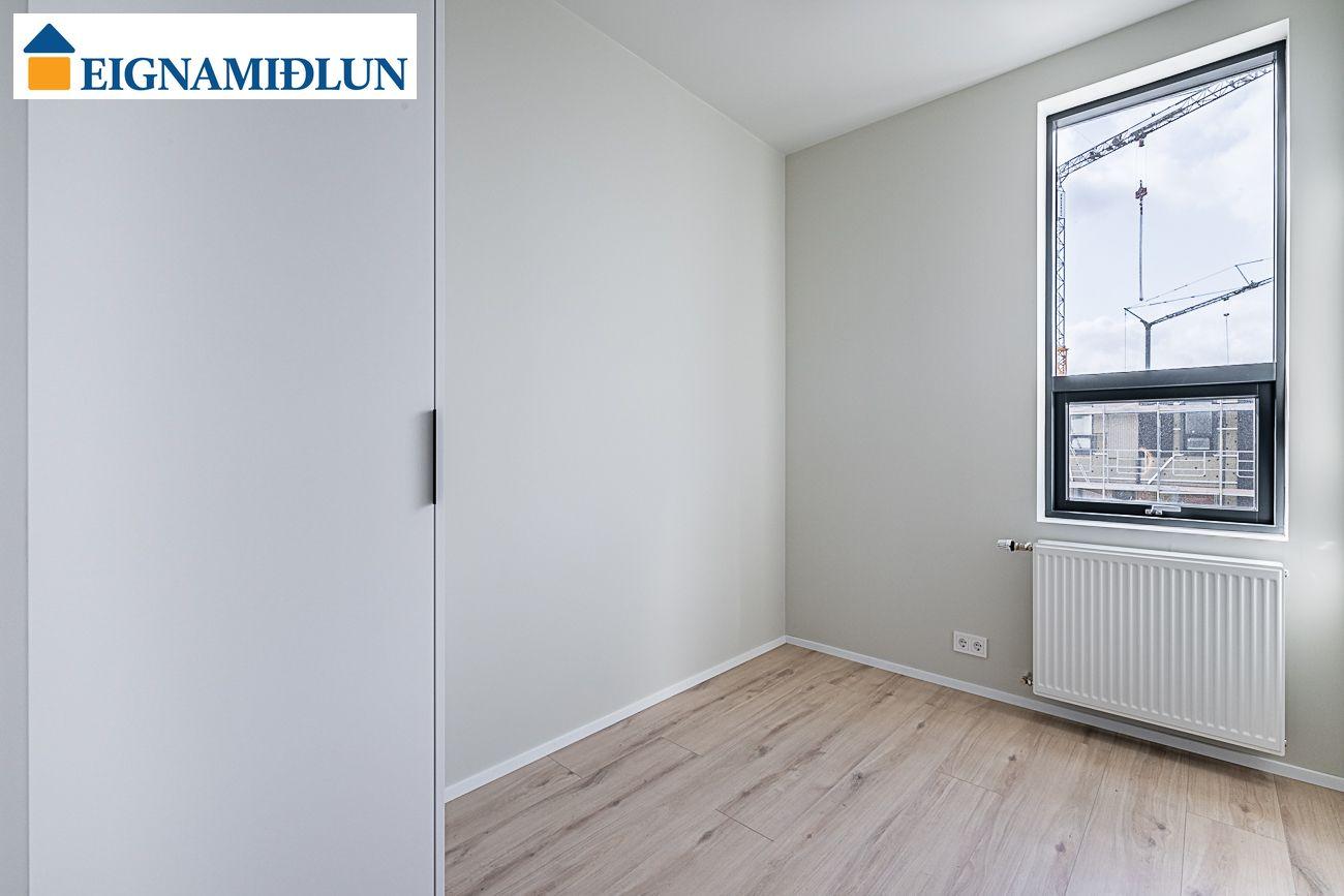 Frágangur: - Íbúðirnar afhendast fullfrágengnar fyrir utan megingólfefni en flísar á baðherbergjum/þvottahúsi. - Innréttingar í eldhúsi verða af vandaðri gerð frá NOBILIA og fataskápar frá Trésmiðju GKS. - Eldhústæki verða; blástursofn, spanhelluborð og innbyggður ísskápur frá Whirlpool sem þjónustað er af Heimilistækjum. - Flest baðherbergi í minni íbúðum eru flísalög með sturtuklefa, handklæðaofni og aðstöðu fyrir þvottavél og þurrkara. Baðherbergi/þvottahús í stærri íbúðum eru forframleidd og hífð inn í hús samhliða uppsteypu húsanna. Söluaðili baðherbergjanna er Wilbergs/Bitter ehf. (Parki) og eru þau hönnuð af Boxen samkvæmt norskum stöðlum. Mikið er lagt upp úr vönduðum frágang og er allt efni og búnaður af þekktri og viðurkenndri gerð. - Öll hreinlætistæki eru af vandaðri gerð frá Grohe. - Ljósleiðarar frá OR og Mílu eru í hverri íbúð. - Rafbílahleðslukerfi verður fyrir hendi.