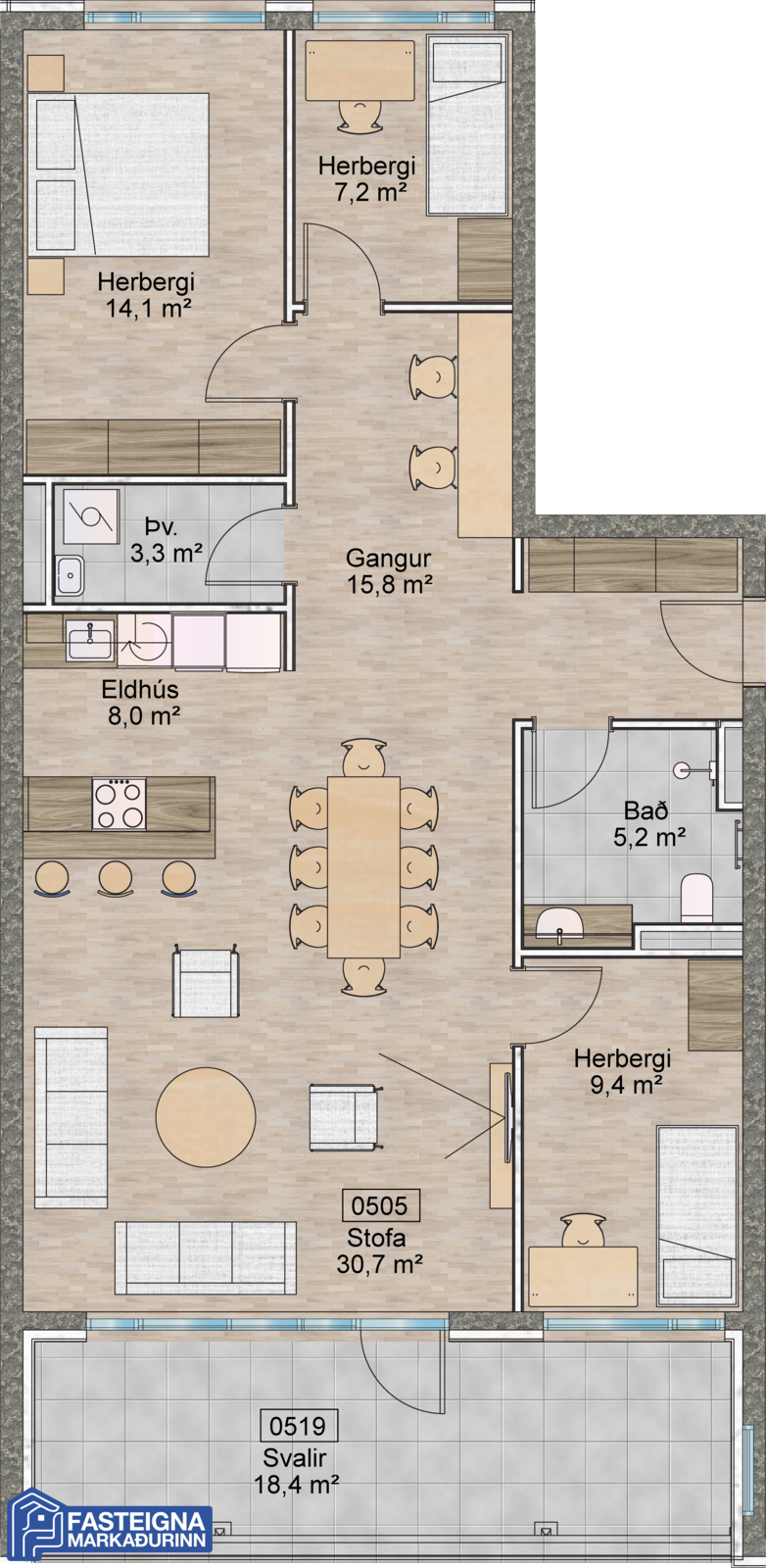 • Þar sem minnst er á gerð tækja í innréttingum í skilalýsingu er átt við tæki af sambærilegri gerð og gæðum. Sama á við um birgja og efnissala. Seljandi áskilur sér rétt til breytinga á byggingartímanum en er þá miðað við sambærilega vöru.