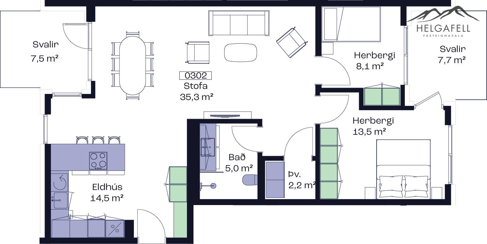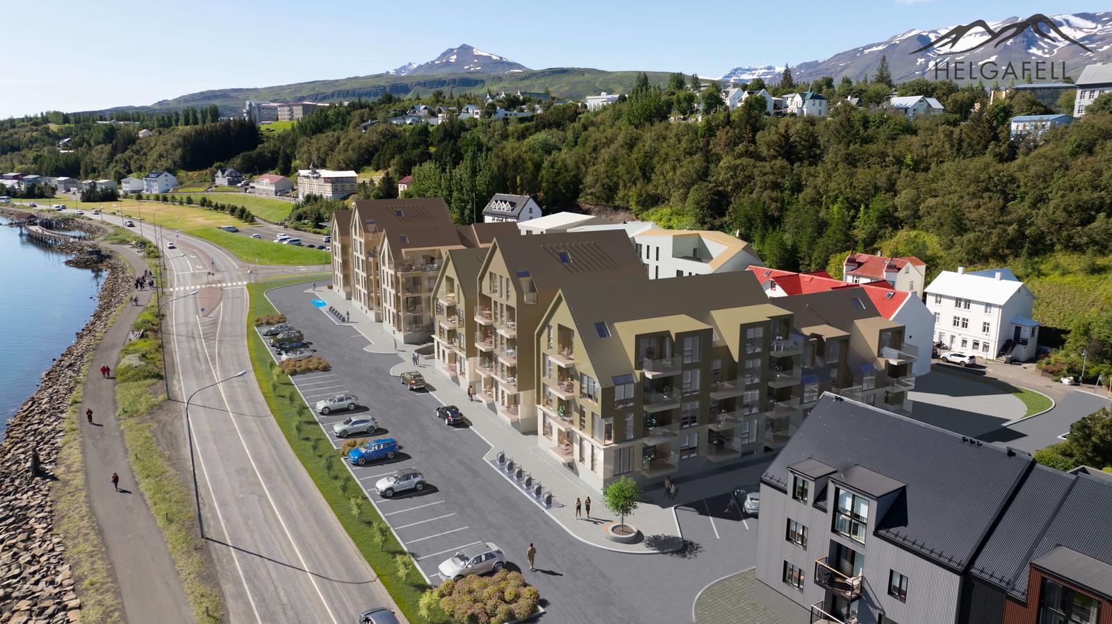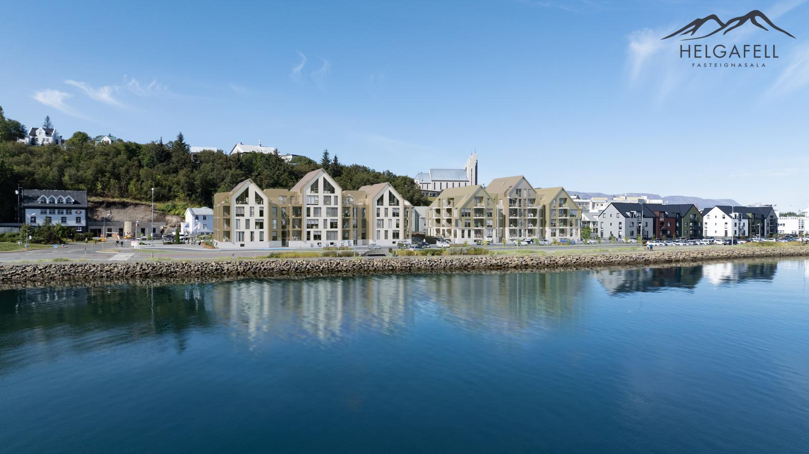 Helgafell fasteignasala kynnir til sölu - þriggja herbergja íbúð merkt 0302 í nýbyggingu með tveimur svölum ásamt stæði í lokaðri bílageymslu við Austurbrú 12, Akureyri.Arkitektar: THG arkitektar