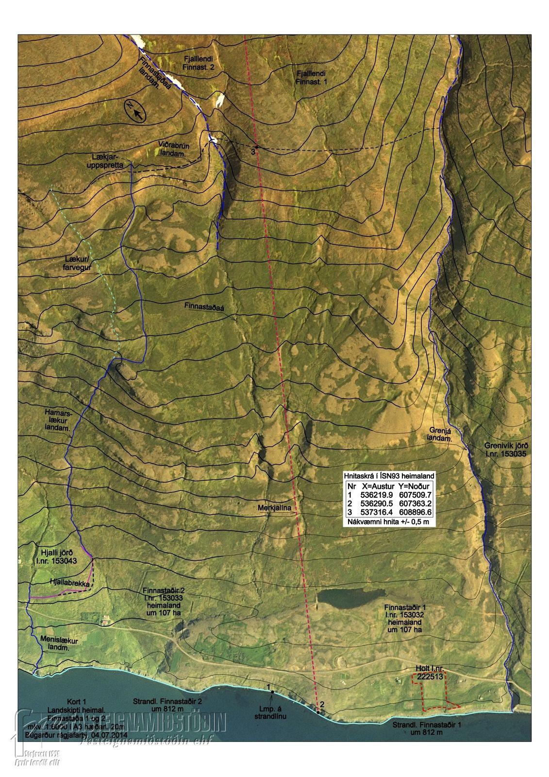 Fasteignamiðstöðin er með til sölu eignina Finnastaðir 1, 616 Grenivík - Grýtubakkahreppi. Fasteignanúmer F216-0650, landeignanúmer L153032. Jörðin er nyrst byggðra jarða við utanverðan Eyjafjörð. Enginn húsakostur er á Finnastöðum I. Landstærð þ.e.a.s svonefnt heimaland er um 100 hektarar og fjalllendi sem er ofan við 400 metra y.s. er um 800 hektara. Land er þarna mjög gróið næst firðinum og mjög fallegt yfir að líta. Mikið útsýni er frá jörðinni, Hrísey, Árskógsströndin og ysti hluti Akureyrar sjást vel þaðan. Rúmur kílómetri er að Grenivík og c.a. 45 mín. keyrsla til Akureyrar. Jörðin á stærsta hluta Kaldbaks sem auk þess að vera héraðsprýði Eyjafjarðar á að verða framtíðarskíðasvæði á Norðurlandi. Þar er oftast og lengst snjór á þessu svæði og mjög aðgengilegt. Framkvæmdir eru nú þegar hafnar og vísir að þjónustu kominn á svæðið. Vatnsmiklir lindarlækir renna víða fram úr landinu og var merkjalækur milli Finnastaða og Lómatjarnar virkjaður snemma á 20. öld. Lítið stöðvarhús stendur enn í farveginum. Mjög sérstök eign á stað þar sem hægt er að njóta kyrrðar og friðar en þó í hæfilegri fjarlægð frá höfuðstað Norðurlands og blómlegustu sveitum fjórðungsins. Mjög góð smábátahöfn er á Grenivík. Þaðan er stunduð útgerð, en víða eru góð fiskimið í firðinum.