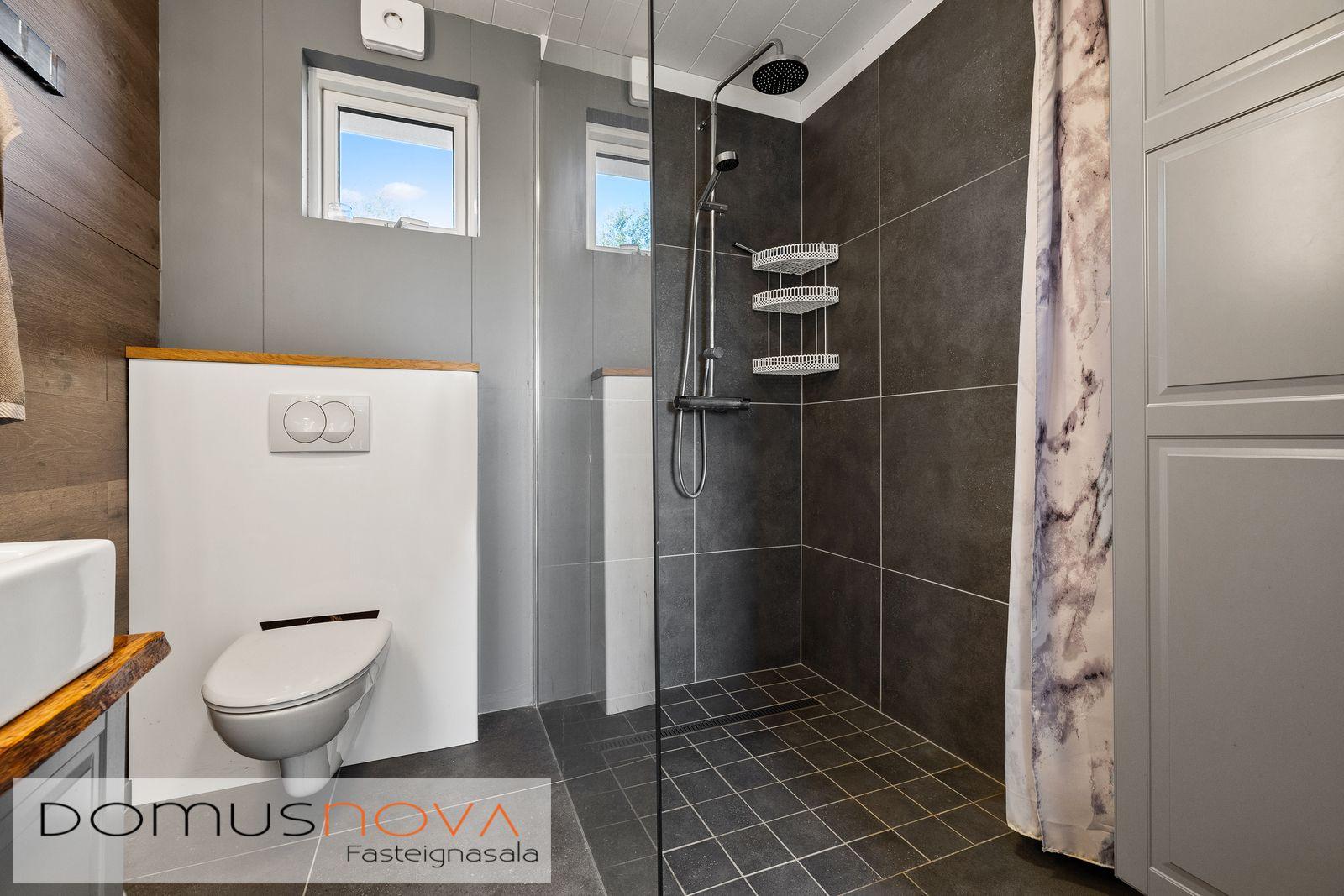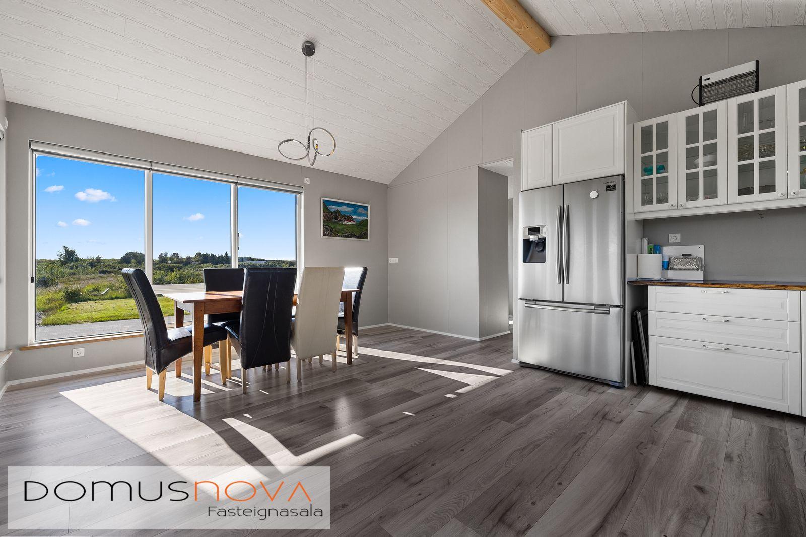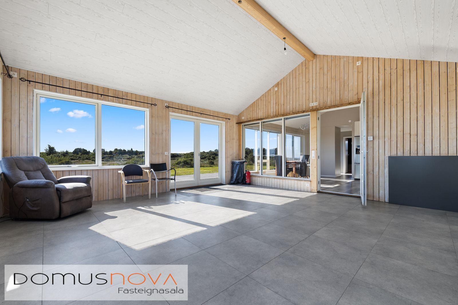 Mikið ef af gluggum í aðalhúsi og einstaklega fallegt útsýni móti suðri og vestri. Auðvelt er að breyta svefnherberginu í tvö herbergi.