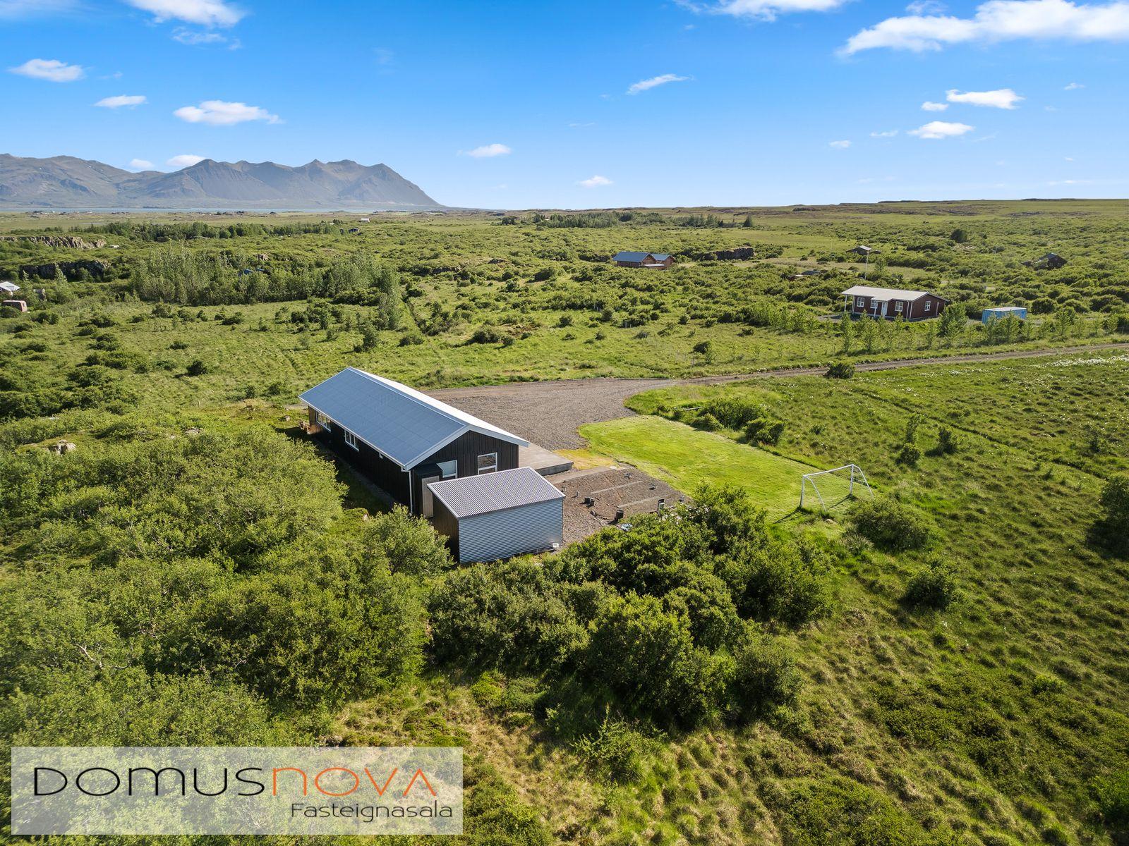 Um er að ræða stórt sumarhús (97,5 fm), geymsluhús/gestahús sem er óskráð (15 fm) og óbyggt gestahús (22,3 fm) sem undirstöður eru klárar fyrir og með teikningum og byggingarleyfi.