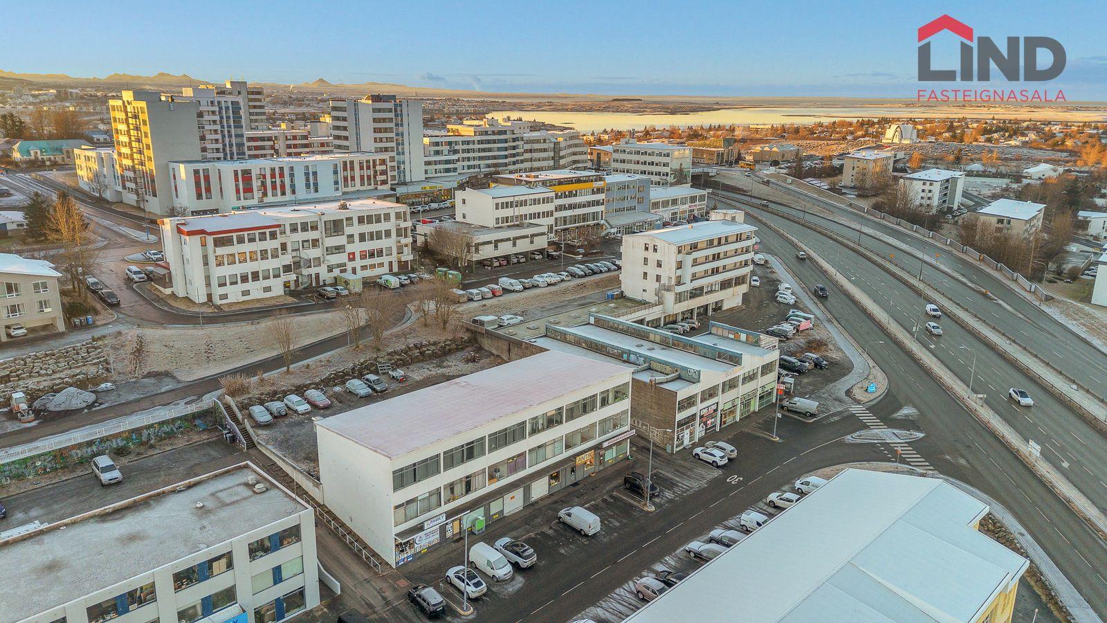 Atvinnuhúsnæði með verslununum á jarðhæð og leigueiningum á annari og þriðju hæð. Húsið þarfnast endurnýjunar, breytt deiliskipulag er í vinnslu á þessu svæði og eru líkur á að byggingarmagn á lóð verði aukið verulega. Gætu því heildar birtir fermetrar verið um 4200fm.