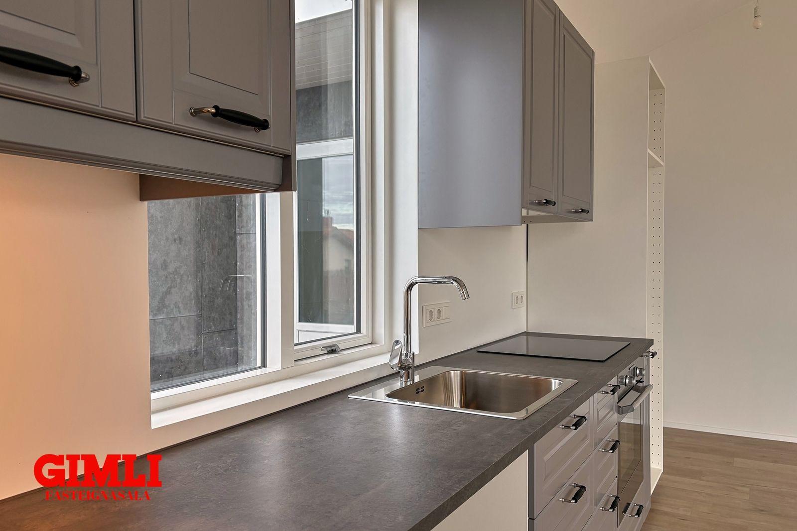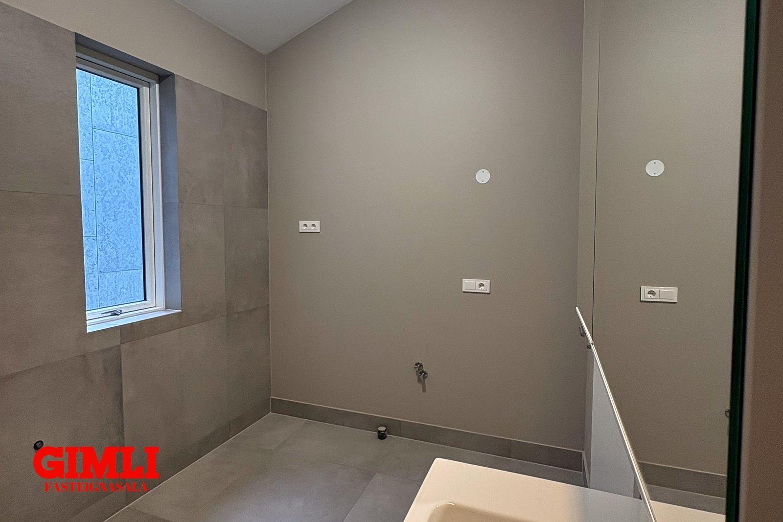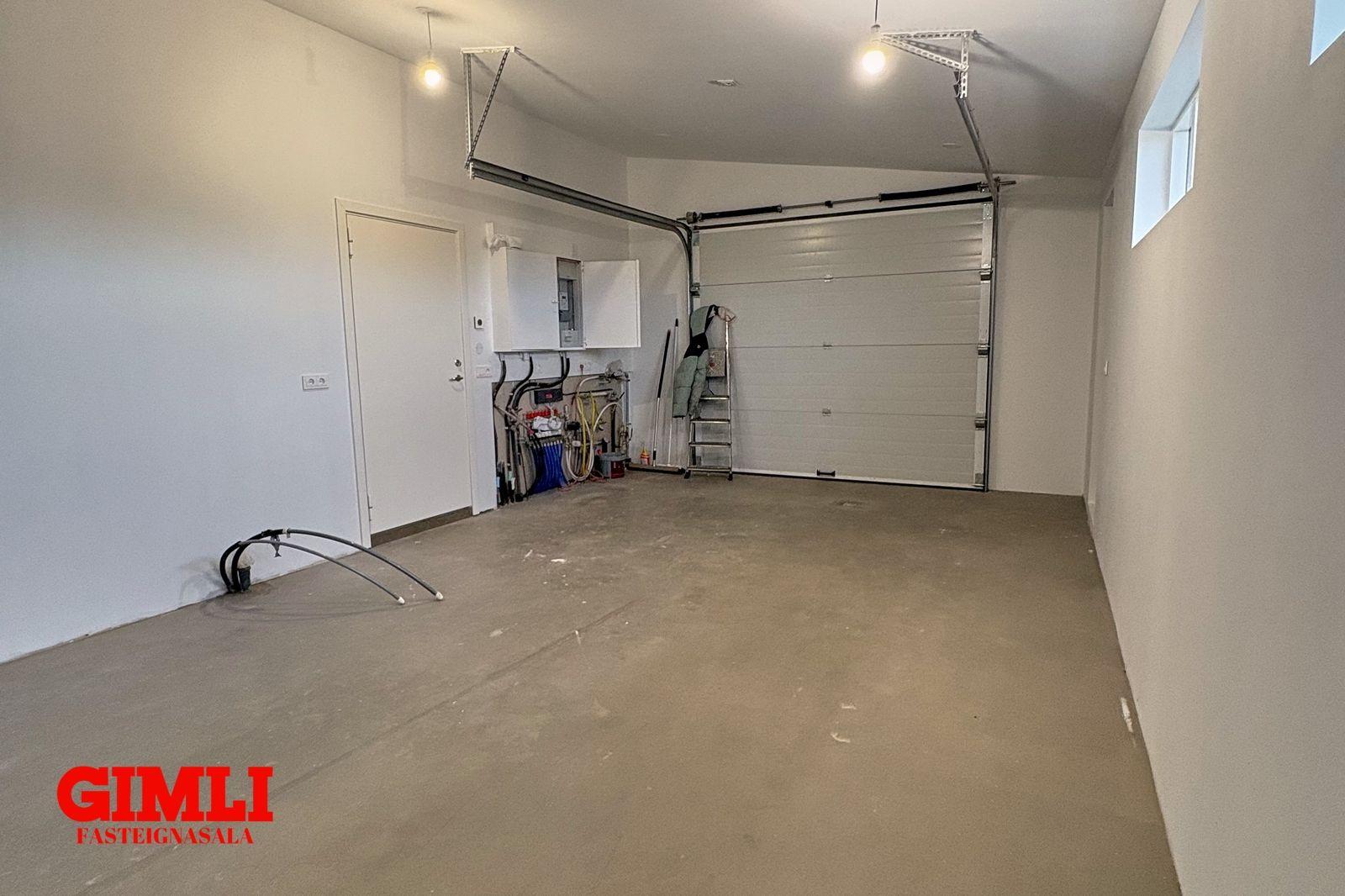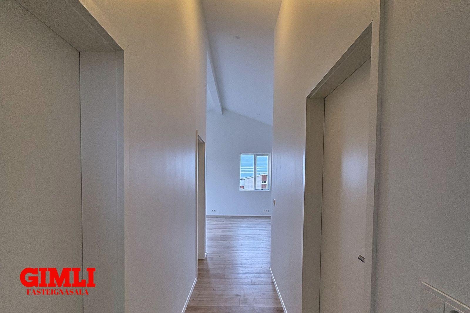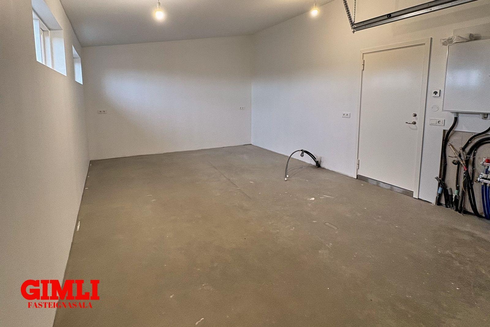 Eignin er fullfrágengin á byggingarstigi 4, matsstigi 7 og getur afhenst við kaupsamning.Nánri upplýsingar veitir Guðmunda Björnsdóttir Stackhouse í síma 7927576, eða gudmunda@gimli.isNÁNARI LÝSING:Húsið er reist með SIP einingum, sem eru sterkbyggðar og vel einangraðar samlokueiningar, samsettar úr OSB plötum og pólýstýren. Innra byrði veggja er klætt tveggja tommu rafmagnsgrind, tveggja tommu ull, 12 mm krossviði og 12 mm gifsi. Loft eru klædd með einföldu gifslagi, en veggir með tvöföldu. Að utan er húsið klætt með gráum fiber cement panel frá Struktúr.