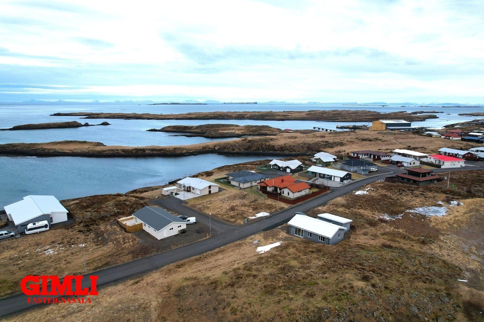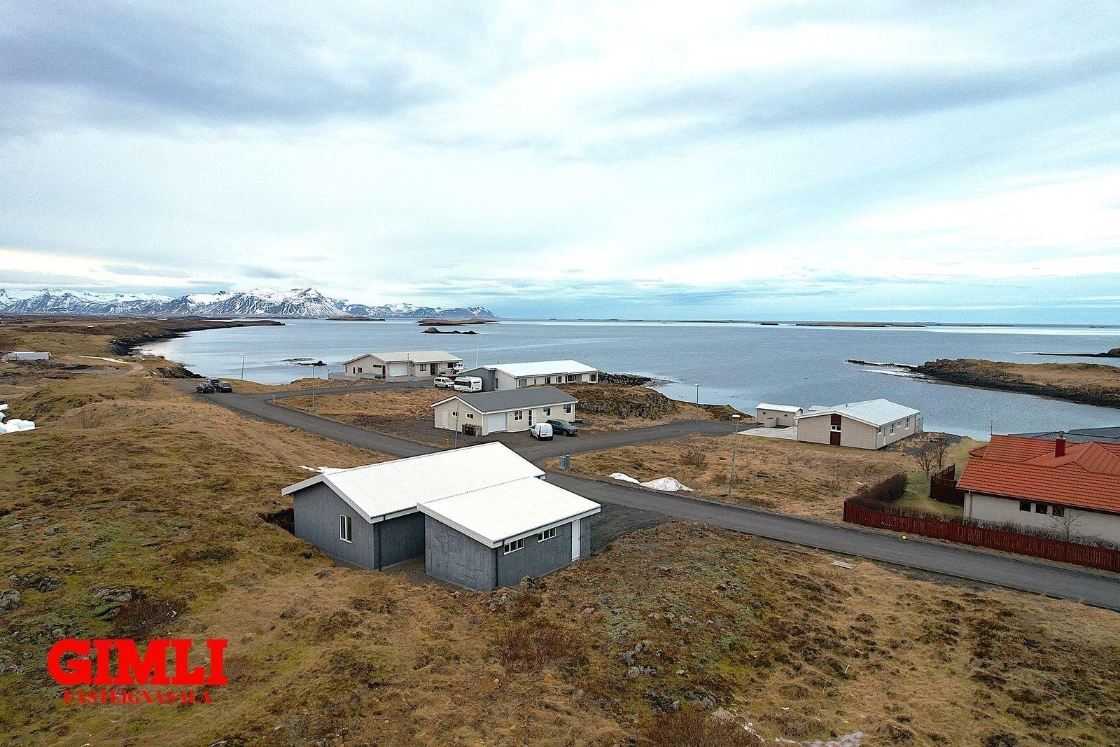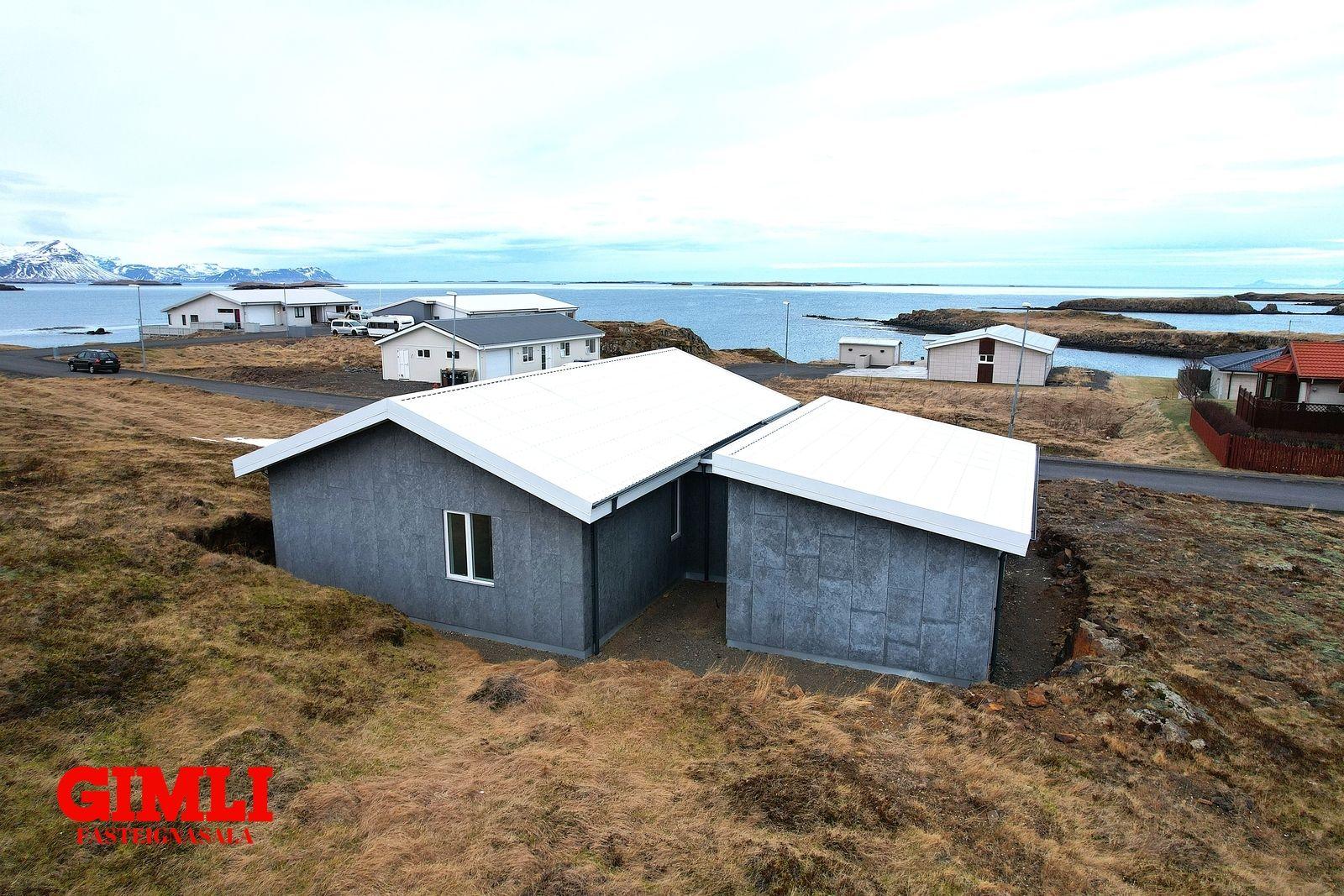 Gimli fasteignasala og Guðmunda Björnsdóttir Stackhouse kynna: Nýtt einbýlishús að Hjallatanga 17 í Stykkishólmi. Um er að ræða 140,5fm hús á einni hæð með björtu og opnu alrými þar sem rúmast stofa, borðstofa og eldhús með góðu aðgengi að lóð, þremur svefnherbergjum, rúmgóðu baðherbergi með þvottaaðstöðu. Stór forstofa tengir saman íbúðarrými og 35,9fm bílskúr. Góð lofthæð er í allri eigninni auk þess sem gert er ráð fyrir innfelldri lýsingu. Húsið stendur á 871fm lóð. Við byggingu hússins var miðað við að halda náttúrulegu landslagi við húsið.