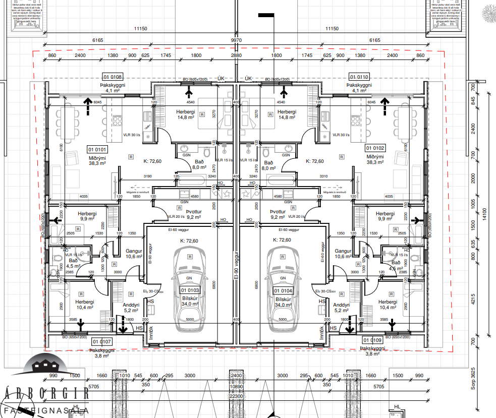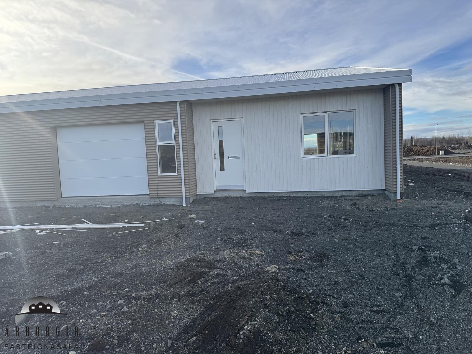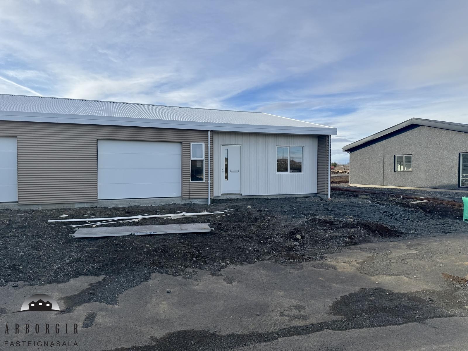 ÁRBORGIR FASTEIGNASALA 4824800 kynna: Fannborgartangi 14 Flúðum Fallegt og vel skipulagt parhús á góðum stað á Flúðum. Húsið er timburhús klætt að utan með lituðu báruáli lituðu timbri í bland og járn á þaki. Gluggar og hurðir eru ál/tré, þakkantur er klæddur með lituðu áli. Heildarstærð eignarinnar er 164,5m2 og er sambyggður bílskúr 38,3m2 þar af. Að innan skiptist eignin í Anddyri, tvö baðherbergi, 3 svefnherbergi, stofu, eldhús, þvottahús auk bílskúrs. Nánari lýsing. Forstofa, flísar á gólfi og þar er fataskápur. Baðherbergi, flísalagt bæði gólf og veggir, þar er gólfsturta með innbyggðum tækjum, baðkar og góð innrétting. Minna baðherbergi er flísalagt bæði gólf og veggir í sturtu, þar er gólfsturta og lítil innrétting. Þvottahúsið er flísalagt og þar er góð innrétting fyrir tæki í vinnuhæð. Eldhús, parketlagt og þar er stór innrétting með eyju. Stofan er parketlög og þar er rennihurð út á baklóð. Herbergin eru parketlögð og eru fataskápar í þeim öllum. Bílskúr skilast fullmálaður með lökkuðu gólfi. Hljóðdúkur er í öllum loftum nema í bílskúr. Loftskiptikerfi er í öllu húsinu. Lóðin skilast þökulögð og mulningur í innkeyrslu.