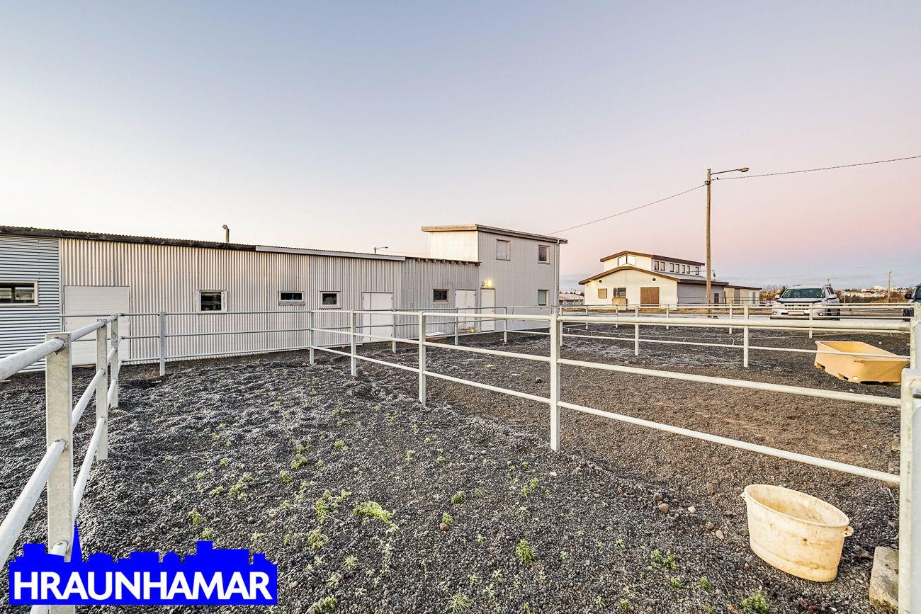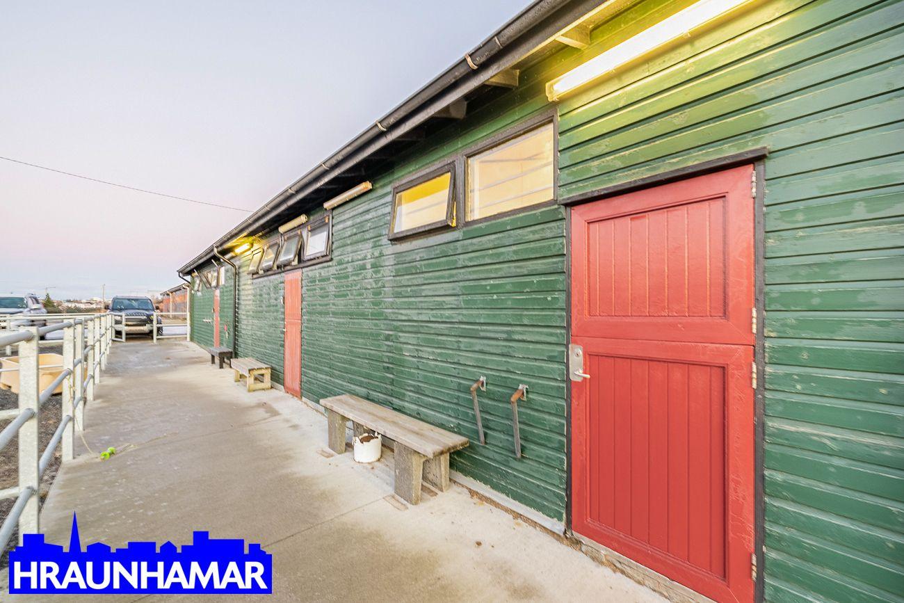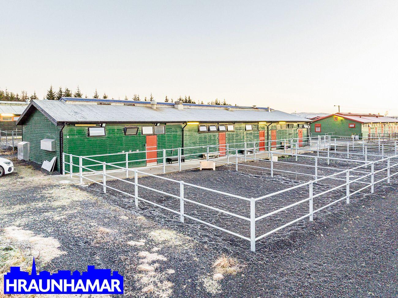 Húsið skiptist m.a. þannig: Hesthús með þremur löglegum nýjum eins hesta stíum, góð hlaða og rúmgóð hnakka og reyðtygja geymsla, geymslurými/geymsluskápur, snotur kaffstofa á millilofti með birtu/glugga niður í hesthúsið. Húsið lítur vel út, með nýlegu sérgerði og nýlegri steyptri stétt fyrir utan húsið. Hiti í stéttinni. Hesthúsið er með heitu vatni. Rúmgóð snyrting. Mikil lofthæð er í hesthúsinu, vifta þar, og nýleg gönguhurð. Ný milligerði úr ryðfríu efni og plasti. Nýir steyptir frontar. Breiður gangur með nýlegum drenmottum á. Sameiginleg taðþró.