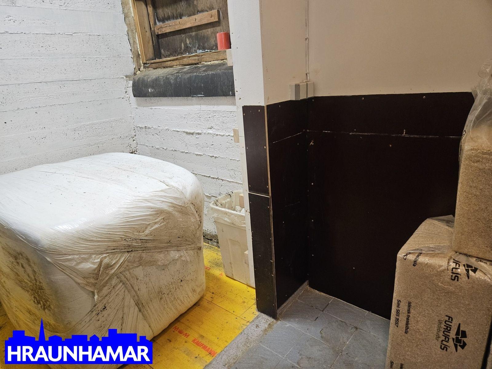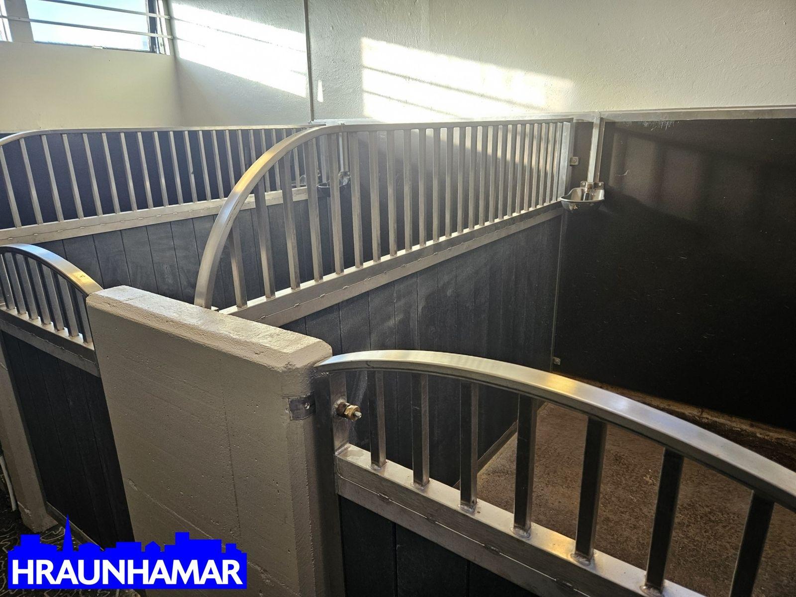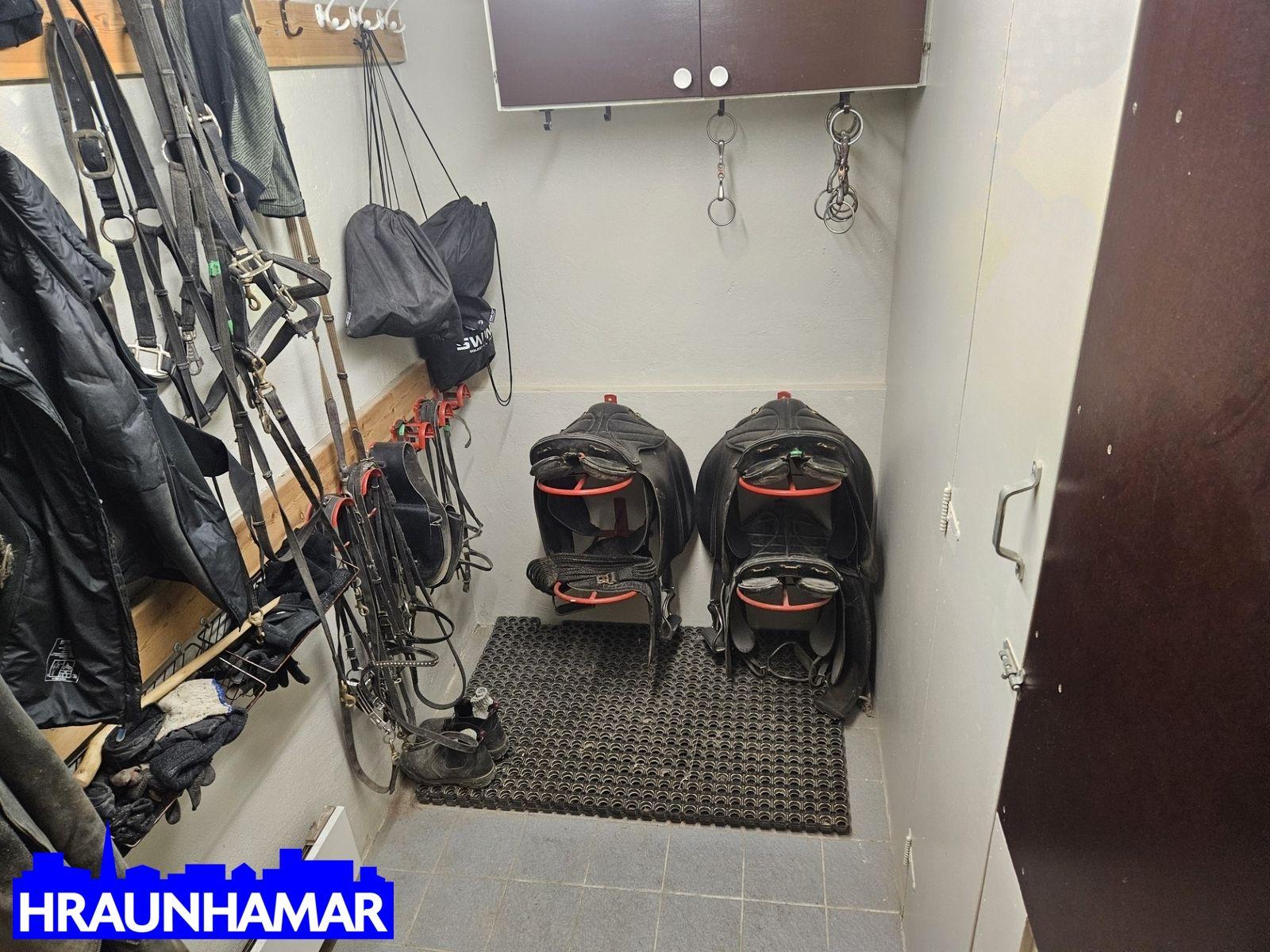 Húsið skiptist m.a. þannig: Hesthús með þremur löglegum nýjum eins hesta stíum, góð hlaða og rúmgóð hnakka og reyðtygja geymsla, geymslurými/geymsluskápur, snotur kaffstofa á millilofti með birtu/glugga niður í hesthúsið. Húsið lítur vel út, með nýlegu sérgerði og nýlegri steyptri stétt fyrir utan húsið. Hiti í stéttinni. Hesthúsið er með heitu vatni. Rúmgóð snyrting. Mikil lofthæð er í hesthúsinu, vifta þar, og nýleg gönguhurð. Ný milligerði úr ryðfríu efni og plasti. Nýir steyptir frontar. Breiður gangur með nýlegum drenmottum á. Sameiginleg taðþró.