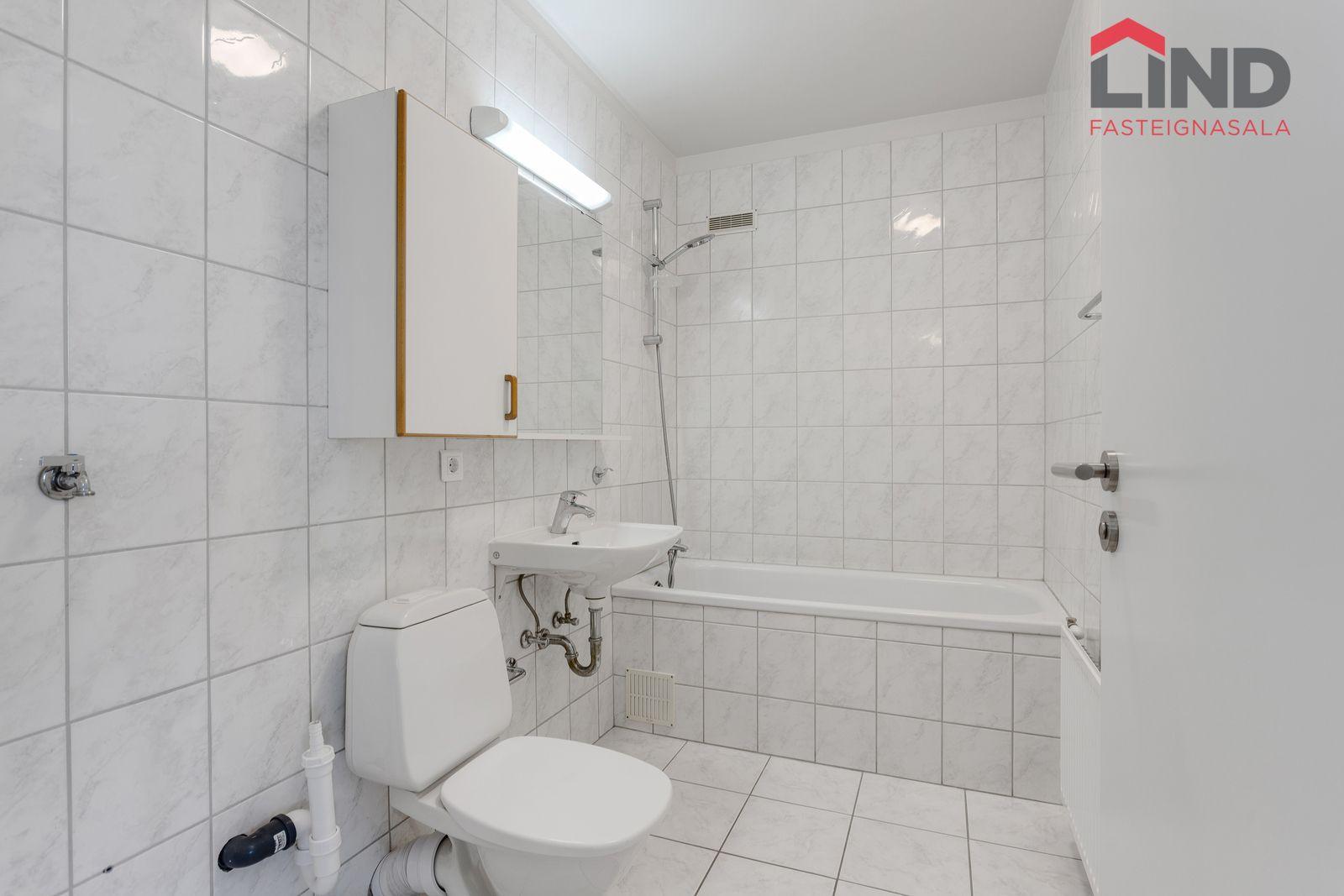 Eignin skiptist í: Alrými sem samanstendur af stofu, borðstofu og eldhúsi með útgengi á svalir. Svefnherbergi með fataskápum. Baðherbergi með vask, innréttingu, salerni og baðkari með sturtuaðstöðu. Tengi er fyrir þvottavél á baðherbergi. Parket er á gólfum íbúðar, fyrir utan baðherbergi sem er flísalagt. Búið er að endurnýja innihurðir, parket og eldhúsinnréttingu. Sameign: Í sameign er sérgeymsla, hjóla- og vagnageymsla ogsameiginlegt þvottahús.