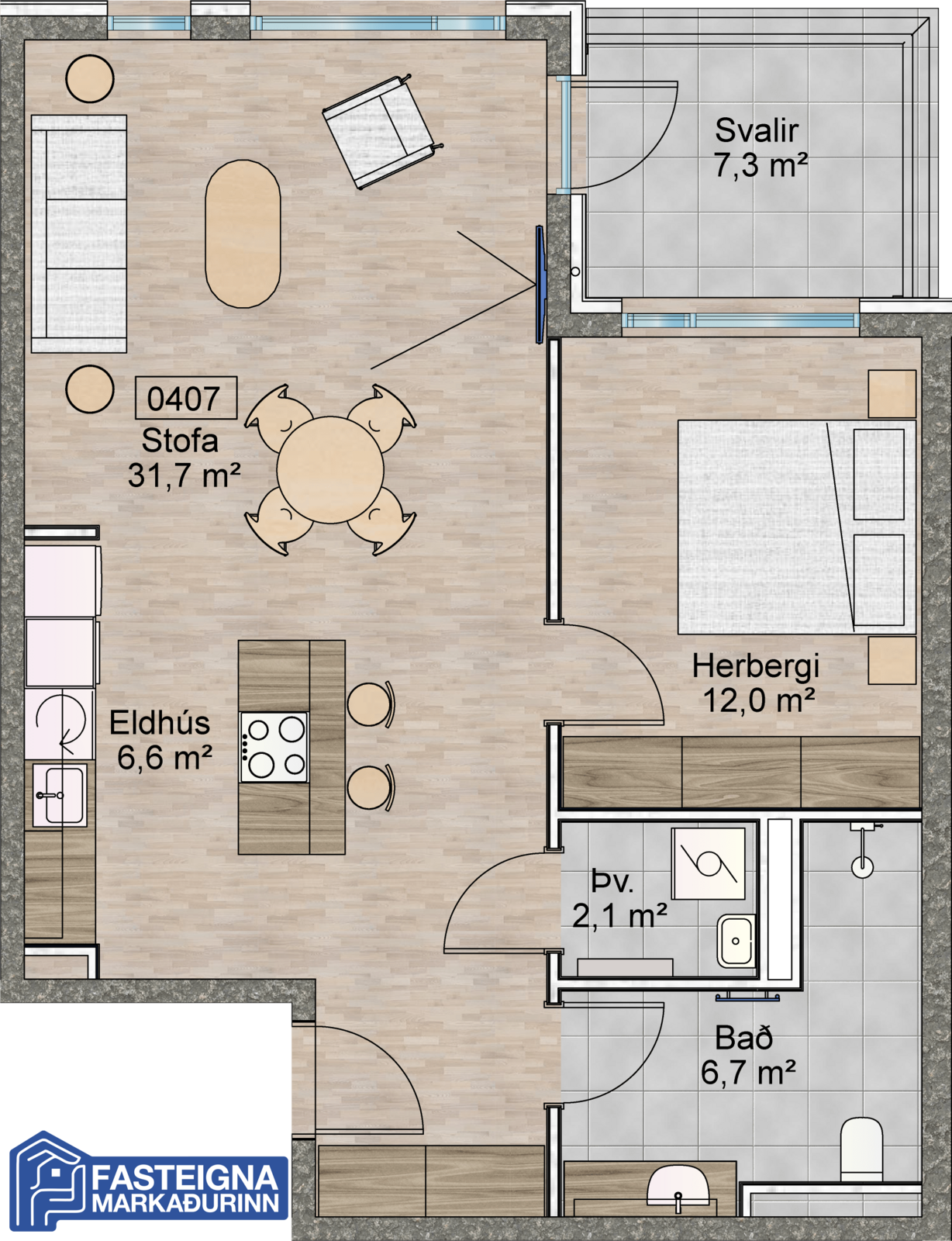 Fasteignamarkaðurinn ehf. sími 570-4500 kynnir til sölu glæsilega og vel skipulagða 2ja herbergja íbúð á 4. hæð, íbúð 0407, í 6. hæða nýbyggðu lyftuhúsi á frábærum stað við Bolholt 7- 9 Reykjavík. Íbúðin er 72,9 fermetrar þar af er geymsla 5,1 fermetrar. Bílastæði í upphituðum bílakjallara merkt B-13 fylgir eigninni.