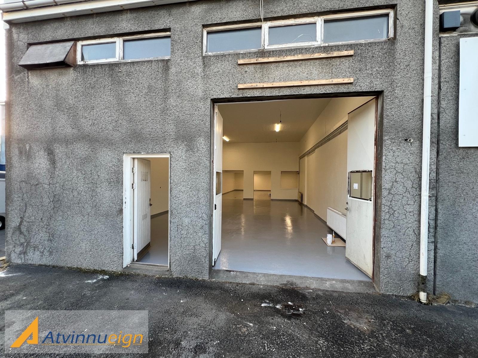 Húsnæðið er að mestu stór salur með um 4 metra lofthæð nema inn af rýminu er rými með tæplega 3 metra lofthæð. Húsnæðið er með einni innkeyrsluhurð og einni inngönguhurð. Ekki VSK-húsnæði. Laust strax.