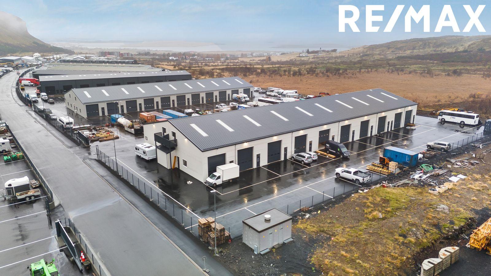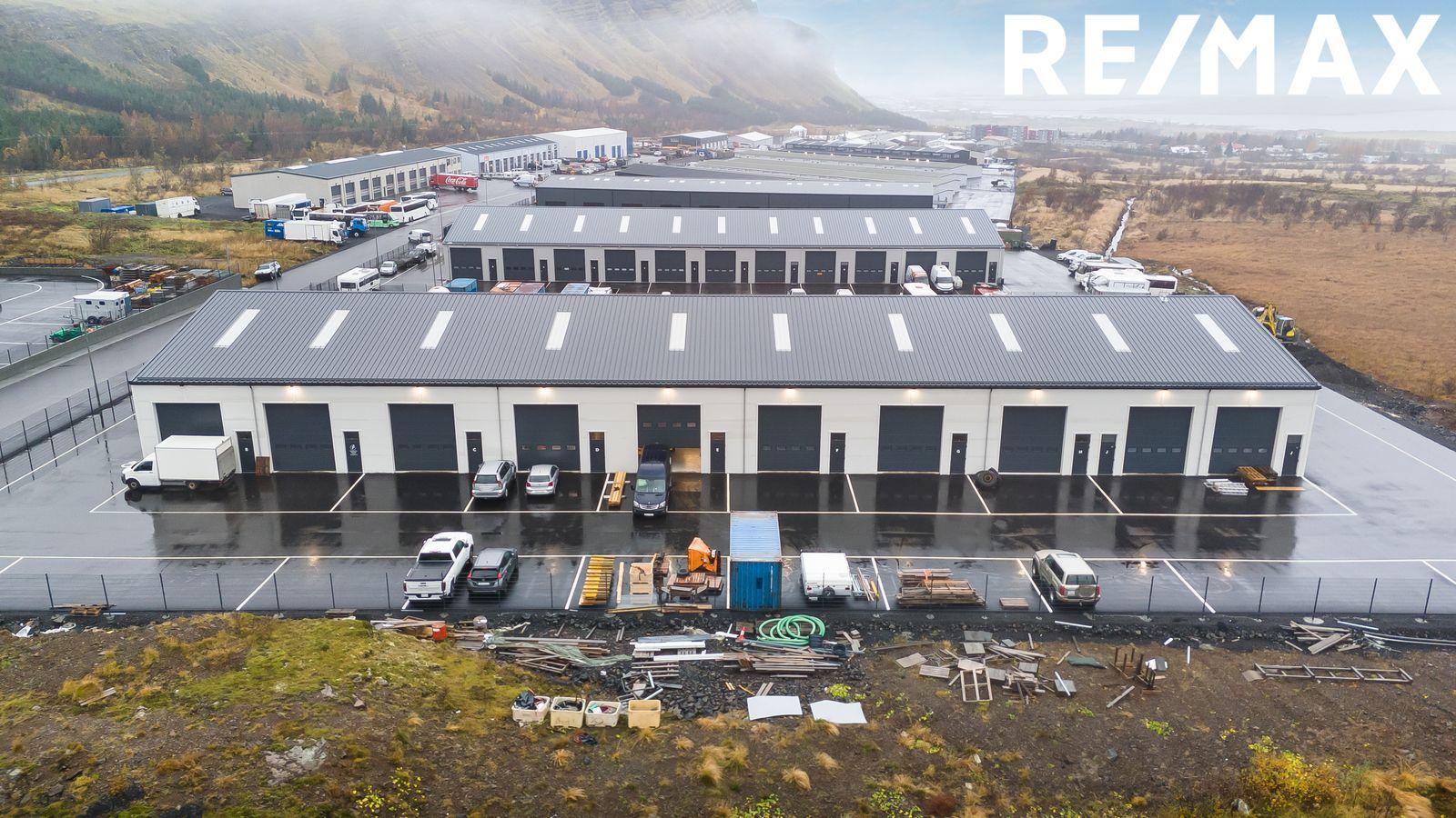 Frágangur utanhúss: Húsið er byggt á 1800 m2 grunnfleti og skiptist í 10 atvinnubil. Húsið er byggt á steyptri vélslípaðri botnplötu, ómeðhöndluð. Burðarvirki úr húss er úr límtréi, milliveggir eru samlokueiningar með steinull, þakvirki er með límtrésbitum áklætt með pir einingum. Útveggir áklæddir pir einingum. Rúmgóðar innkeyrsluhurðir ( 4,5 á hæð og 4,0m á breidd ) með gluggum og rafmagnsopnun, ásamt inngangshurð. Plan verður malbikað, girðing verður á lóðamörkum og rafmagnshlið við aðkomu lóðar.