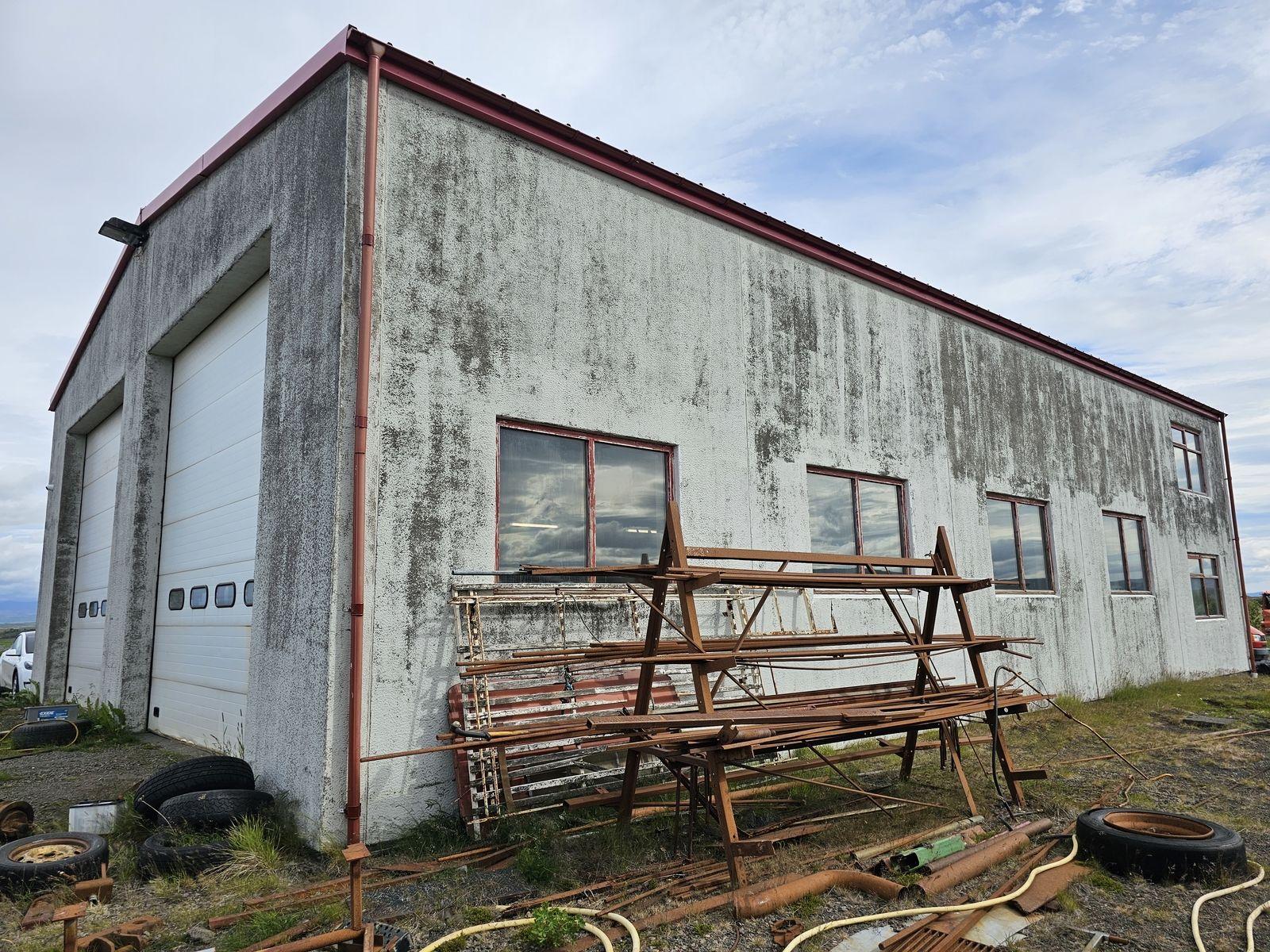 Verkstæðishúsið er 381,4 fm byggt úr forsteyptum einingum. Burðarvirki í þaki er límtré en þakið klætt með yleinungum. Húsið stendur á 2.100 fm iðnaðar og atvinnulóð. Byggingarár er 2005. Að auki hefur félagið yfir lóðinni Melabraut 8 að ráða sem er sömu stærðar. Samtals stærð lóða er því 4.200 fm. Húsið skiptist í flísalagt fordyri með skápum fyrir starfsmenn. Þar á aðra hönd er flísalögð snyrting og rúmgóð kaffistofa á hina. Þar innaf eru skrifstofur með flísar á gólfum og stigi upp á milliloft. Á millilofti eru 3 herbergi, skrifstofur og geymsla. Verkstæðissalur er um 180 fm með steypt gólf. Vegghæð er 5,75 m. 2 rafdrifnar innaksturdyr eru á gafli 4.10 m að hæð. Inn af salnum er síðan varahlutalager. Í lægri hluta byggingarinnar er gott lagerrými með innaksturshurð. Húsið er hitað með hitaveitu og eru blásari í verkstæðissal. Öflugur hlaupaköttur er í verkstæðishlutanum sem nota má hvar sem er í salnum.