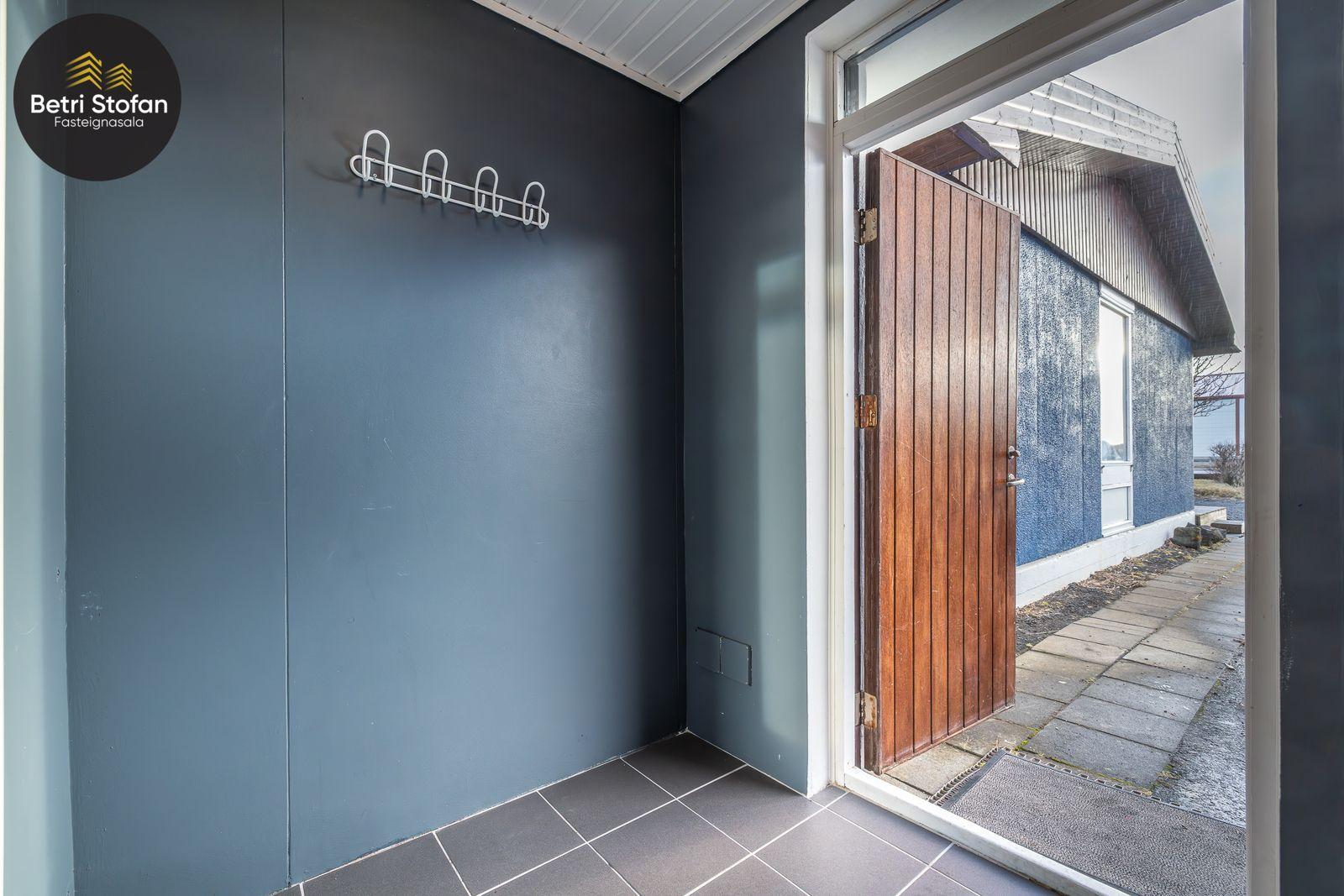 Geymsla: Innbyggð geymsla aftast í bílskúr. Gengið í geymslu úr bakgarði.