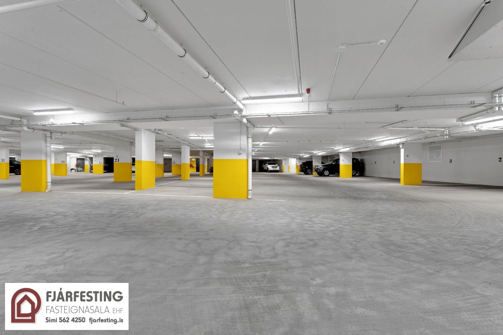 Í kjallara er stæði í lokaðri bílageymsla og góð sérgeymsla.
