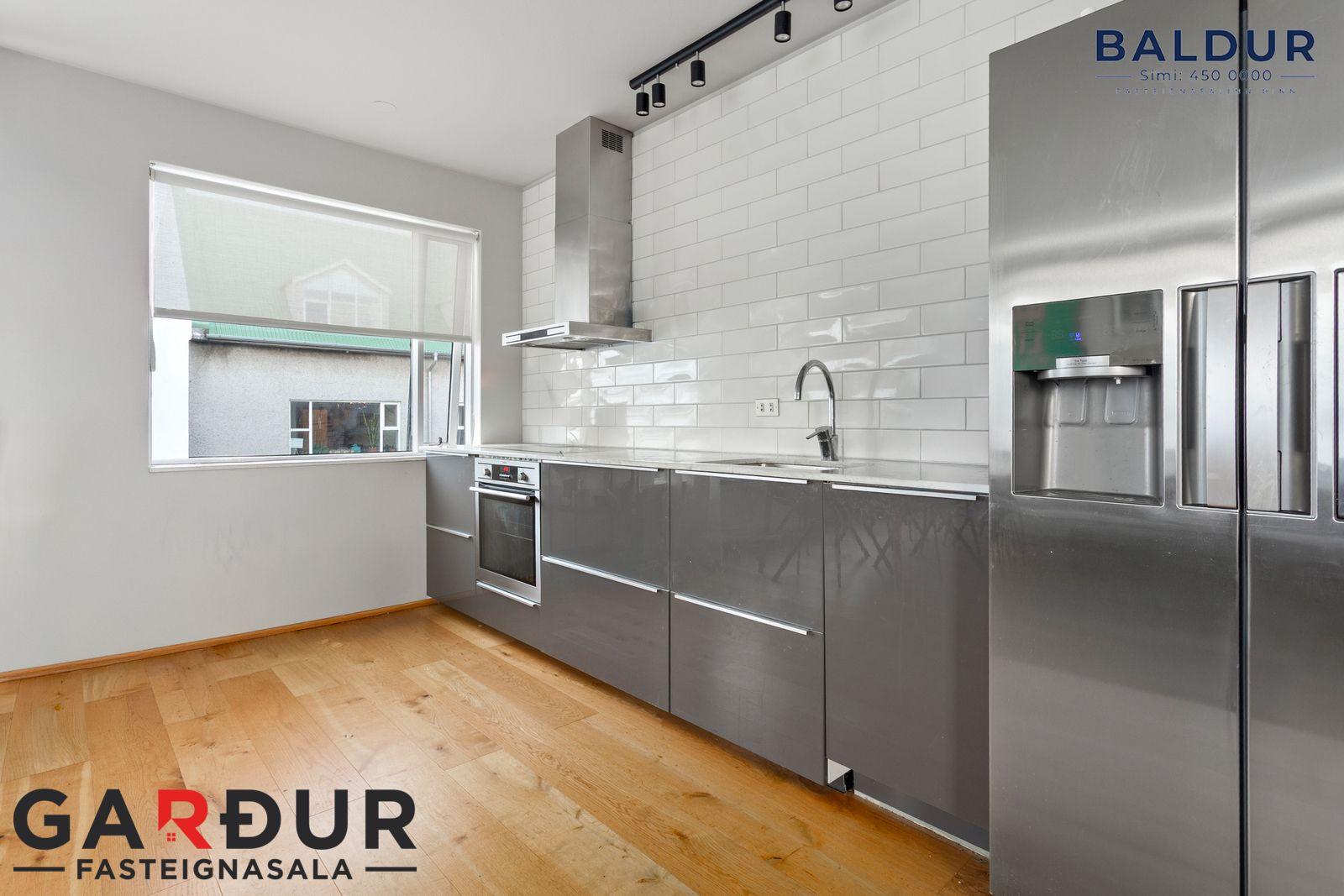 fullbúinni stúdíóíbúð á jarðhæð, skráðri sem bílskúr. Heildarstærð eignarinnar samkvæmt Þjóðskrá er 102 fermetrar, þar af er stúdíóíbúðin skráð 19,1 fermetrar. Hér er einstakur fjárfestingarkostur á fjölskylduvænum stað með mjög góðum útleigumöguleika.